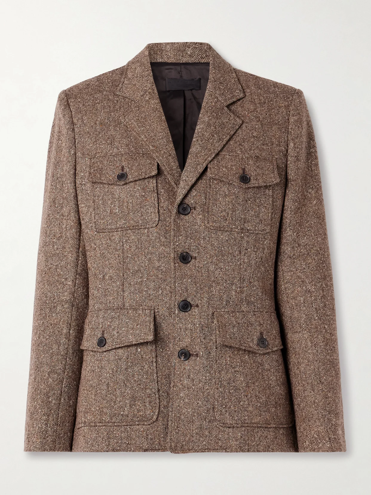 Nili Lotan's vintage-inspired collections are informed by the designer's personal archive of '60s and '70s pieces. This 'Fleur' jacket is tailored from wool-blend tweed in a 'Colonial Brown' melange and topped with four flap pockets. Padded shoulders add structure, while the full satin lining ensures smoothness.
