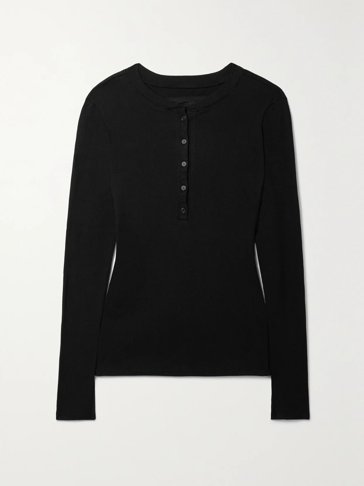 Nili Lotan's 'Jordan' top is made from comfortable cotton-jersey that's naturally stretchy. It's ribbed to enhance the close fit and has a Henley placket so you can leave a few buttons undone. Wear yours with everything from track pants to tailoring.