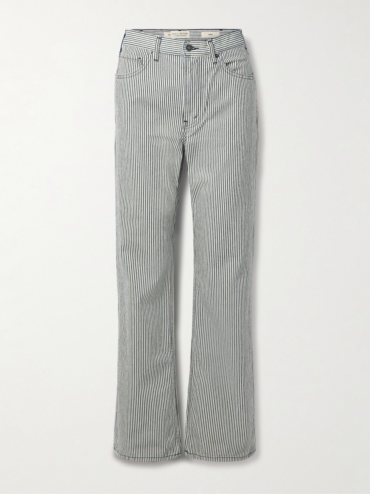 Nili Lotan's 'Mitchell' jeans are made from denim featuring elongating white and midnight-blue stripes. They're designed to sit low on the hips and have a classic five-pocket construction and relaxed legs. Keep them in focus against a solid tank or shirt.