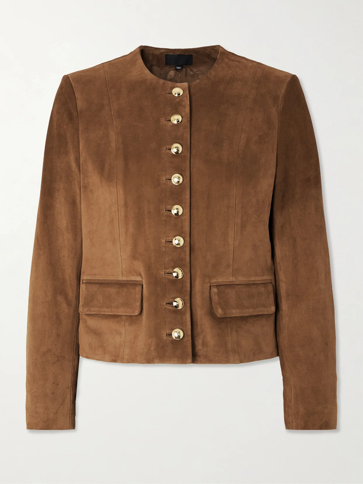 Nili Lotan's 'Nanon' jacket has a collarless shape that's so chic. Made from supple suede, it has loose fit with streamlining seams and crested gold-tone buttons.