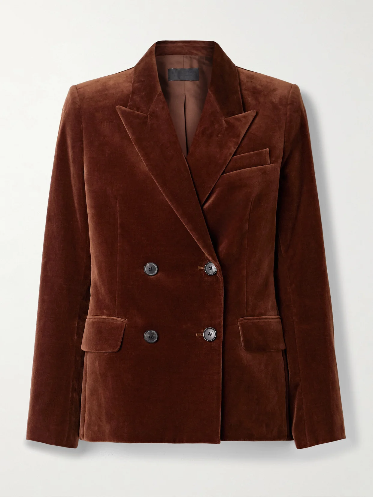 Nili Lotan's 'Veda' blazer is made from plush cotton-blend velvet that further enhances the opulence of the design. It's tailored with a double-breasted front and has peak lapels and padded shoulders for structure.