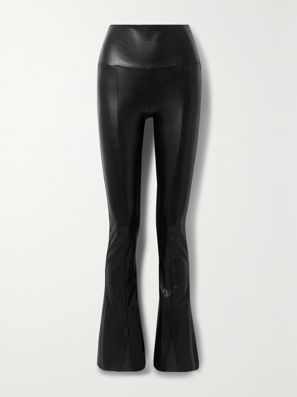 Norma Kamali's 'Spat' leggings have dramatically flared hems emphasized by splits and a structured lining. Made from stretchy vegan leather, they're cut with a high-rise waist and fit slim through the legs. Style yours with a chunky sweater and point-toe pumps.