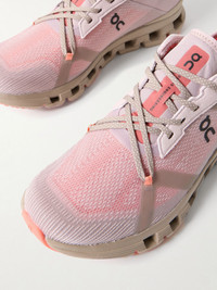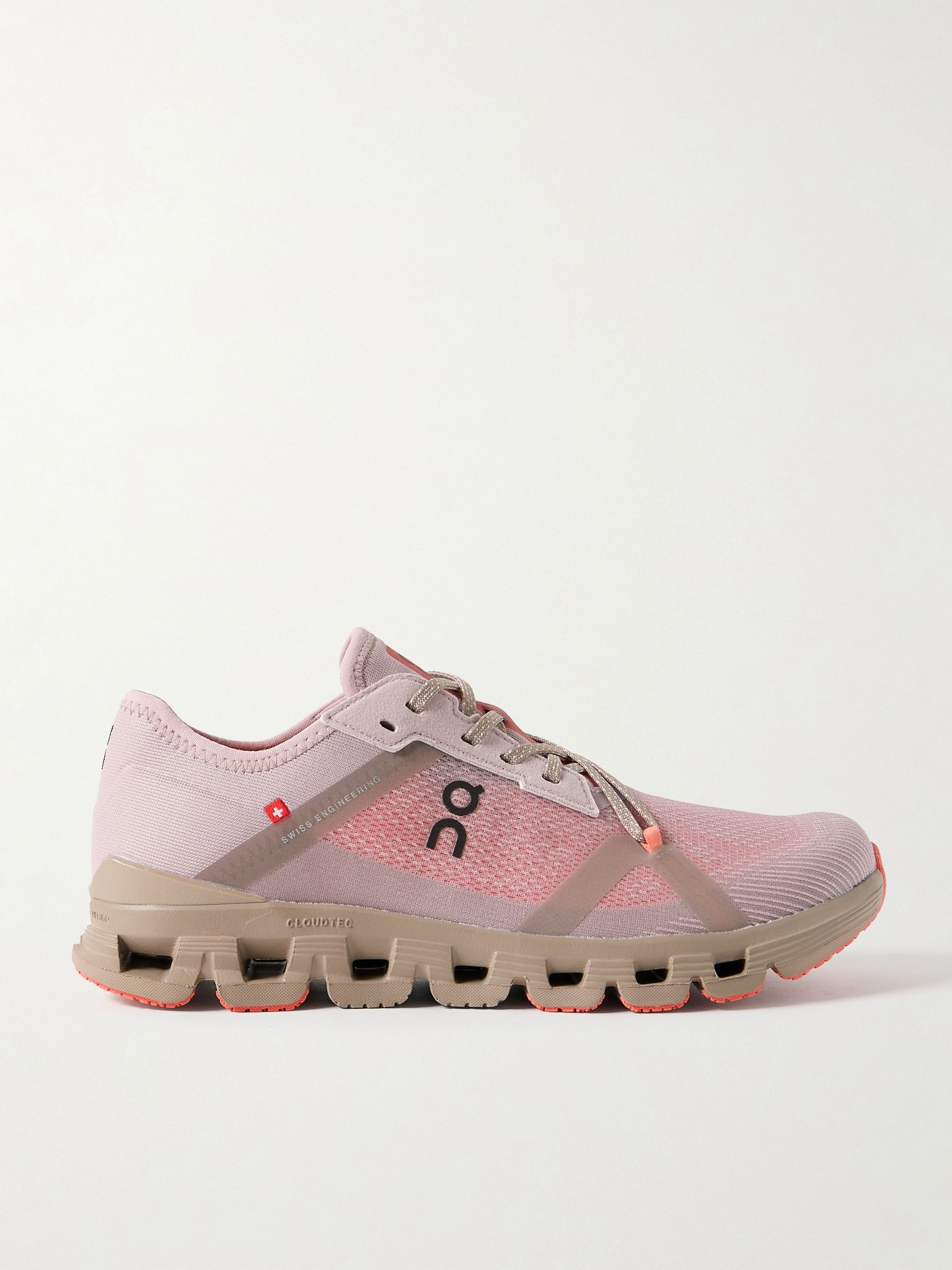 ON's 'Cloud x 4 AD' sneakers are equally suited for your workout or everyday activities. They're made from lightweight, abrasion-resistant recycled-mesh and feature a fork-shaped Speedboard® that enhances flexibility. Size & Fit Fits true to size, please refer to ON size guide below: - US 5 = UK 3/ EU 36 - US 5.5 = UK 3.5/ EU 36.5 - US 6 = UK 4/ EU 37 - US 6.5 = UK 4.5/ EU 37.5 - US 7 = UK 5/ EU 38 - US 7.5 = UK 5.5/ EU 38.5 - US 8 = UK 6/ EU 39 - US 8.5 = UK 6.5/ EU 40 - US 9 = UK 7/ EU 40.5 - US 9.5 = UK 7.5/ EU 41 - US 10 = UK 8/ EU 42 - US 10.5 = UK 8.5/ EU 42.5 - US 11 = UK 9/ EU 43 Details & Care - Rubber sole measures approximately 30mm/ 1 inch - Lilac and bubblegum recycled-mesh, taupe rubber - Lace-up front - Designer color: Mauve/ Salmon - ON follows its own size guide, therefore the size stated on the box will differ from the one provided in our size chart. To receive your correct fit, please refer to Size & Fit notes