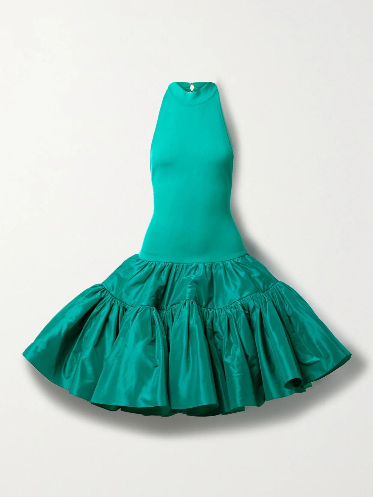 Tiered Stretch-knit And Silk-taffeta Halterneck Mini Dress
