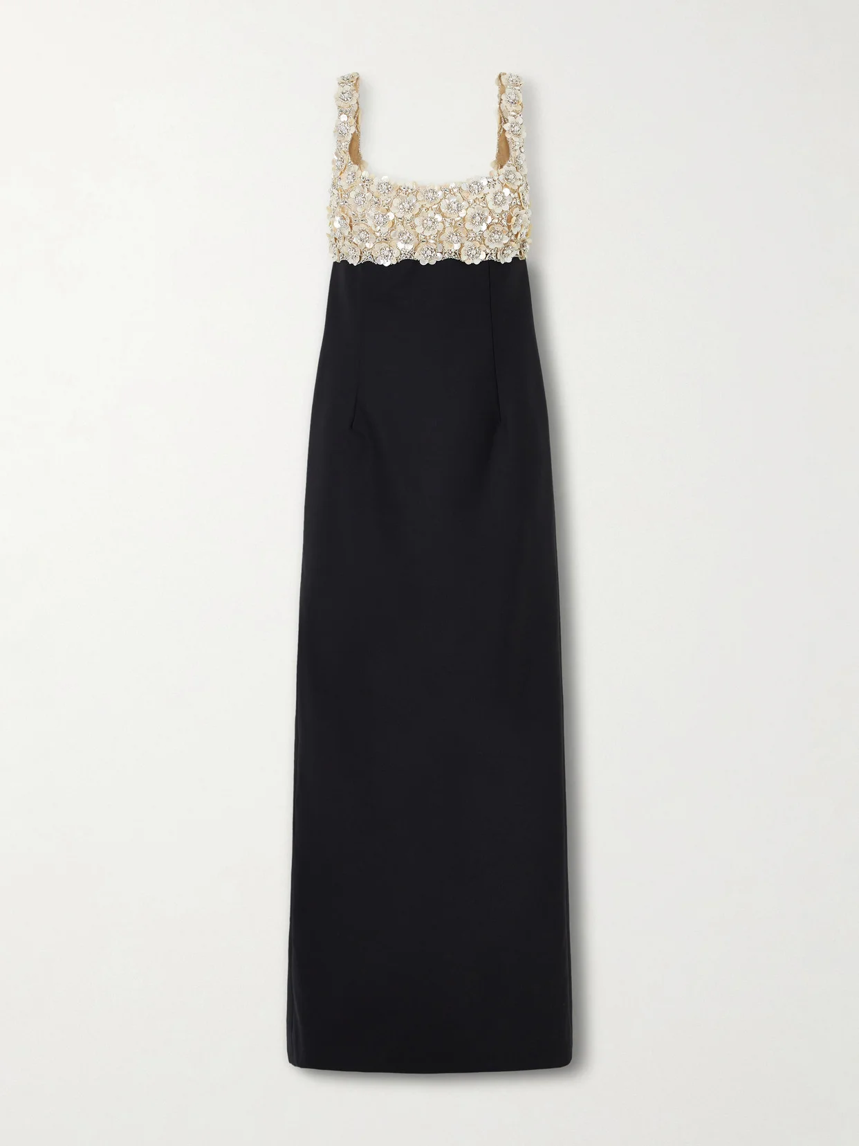 Oscar de la Renta's gown promises a showstopping arrival. It's been made in Italy with a tulle empire bodice and wool-blend column skirt. Inspired by beautiful botanicals, it's intricately embroidered with crystals, pearls and lustrous mother-of-pearl petals.
