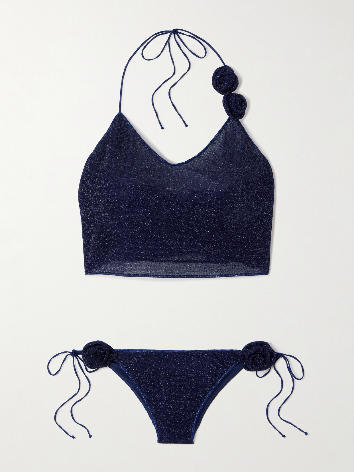 Oseree's bikini is made with the same shimmering fabric seen throughout the label's signature 'Lumiere' collection. Fully lined for coverage and comfort, it features a top adorned with floral appliques and low-rise briefs. Adjust the straps on both to perfect the fit.