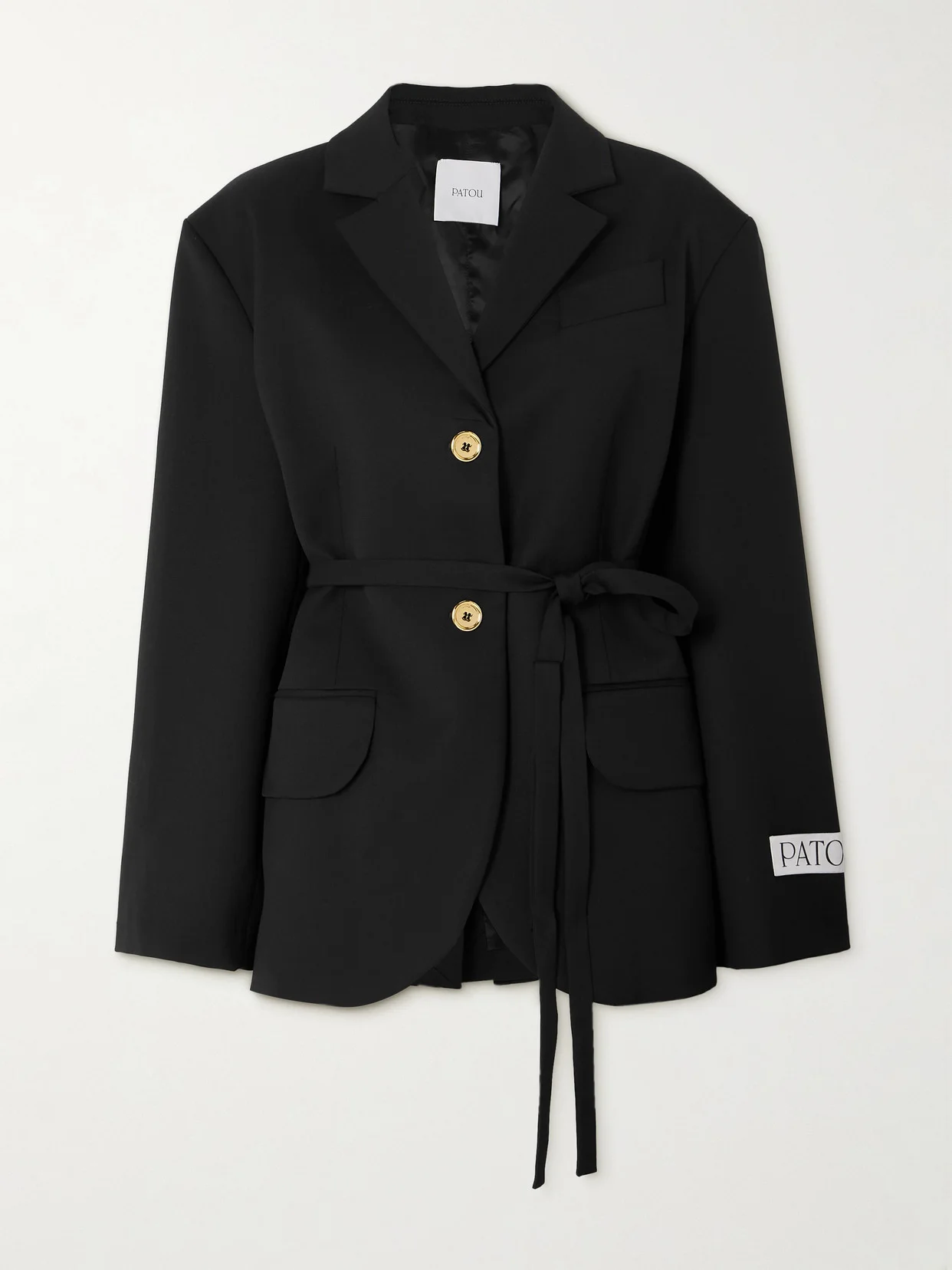 Patou's designs capture the effortless elegance of Parisian style. Tailored from stretch-wool twill, this blazer has notched lapels, logo-embossed buttons and a belt to cinch your waist. Wear yours with the label's jeans.