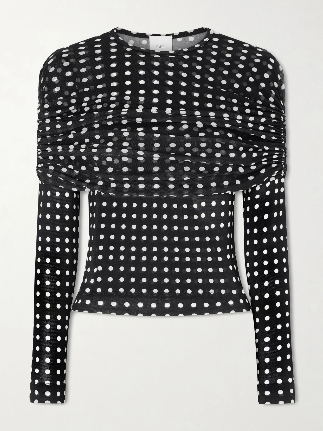 Patou's top will add a touch of whimsy to your evenings out. Made from airy chiffon, it's patterned with polka-dots and artfully ruched below the shoulders.