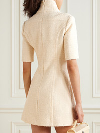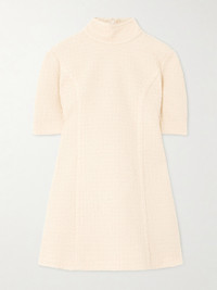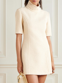 Turtleneck wool-blend tweed mini dress Cream