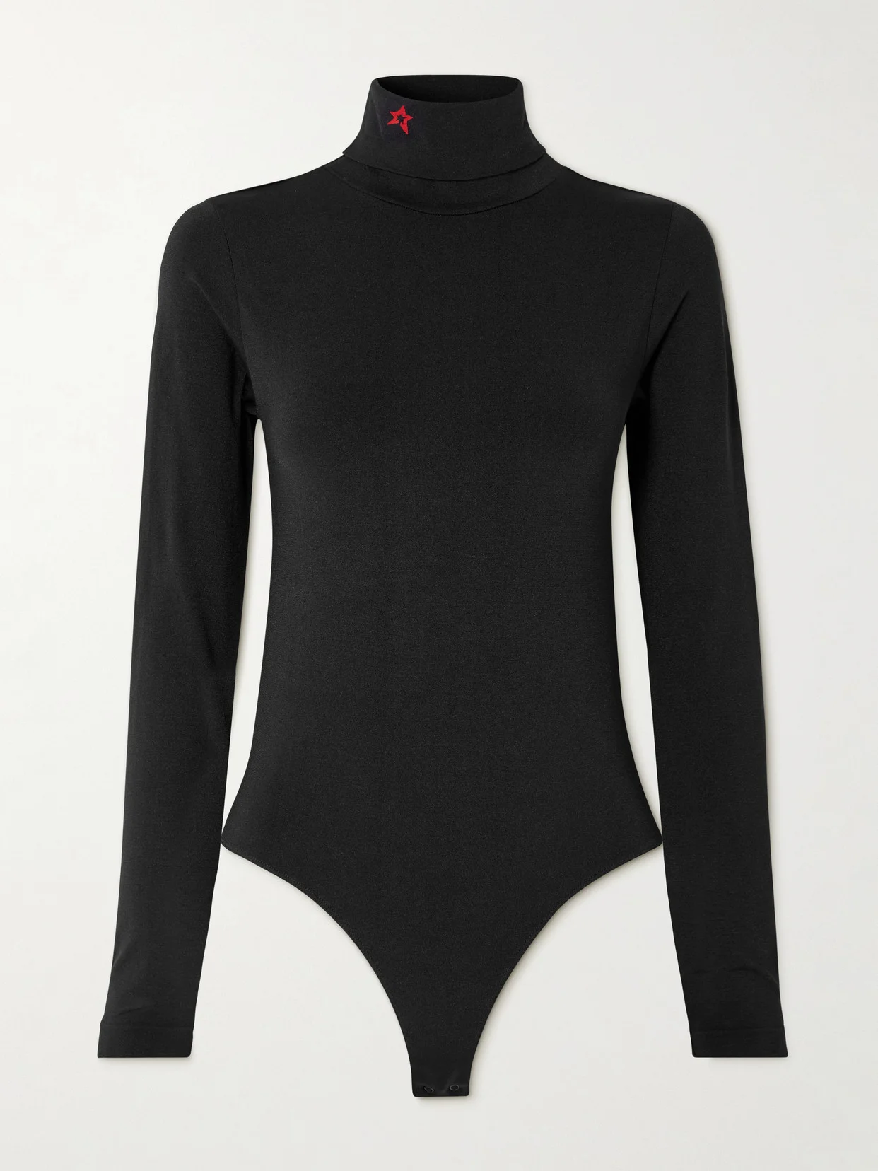 Perfect Moment's bodysuit is designed with a seamless construction, ensuring comfort on and off the slopes. It's cut from soft jersey in a close fit and has a sleek turtleneck embroidered with the brand's star logo. It works with jeans or knitted pants apres-ski.