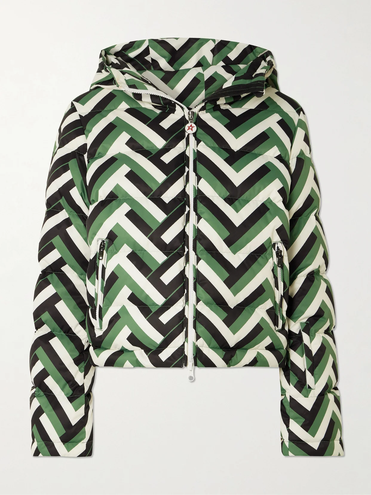 Designed with a bold chevron print, Perfect Moment's 'Polar Flare' ski jacket all but guarantees your performance on the slopes will get noticed. It's made from durable shell insulated with plenty of down and has zipped pockets to secure your pass and gloves. The generous hood and jersey cuffs keep out the elements. Wear it with the matching pants.
