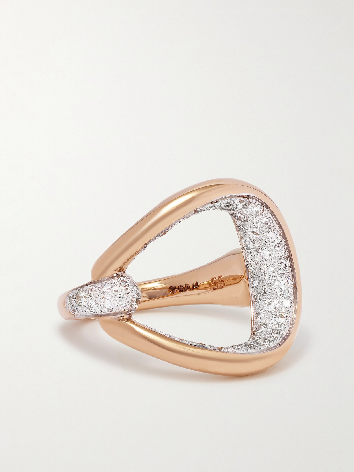 Pomellato's ring is part of the label's sculptural 'Fantina' collection which favors sinuous curves inspired by equestrian motifs. Handcrafted by artisans in the label's Italian atelier, this 18-karat rose gold design has a twisted band and unique open-ended shape that's illuminated with 0.971-carats of shimmering diamonds.
