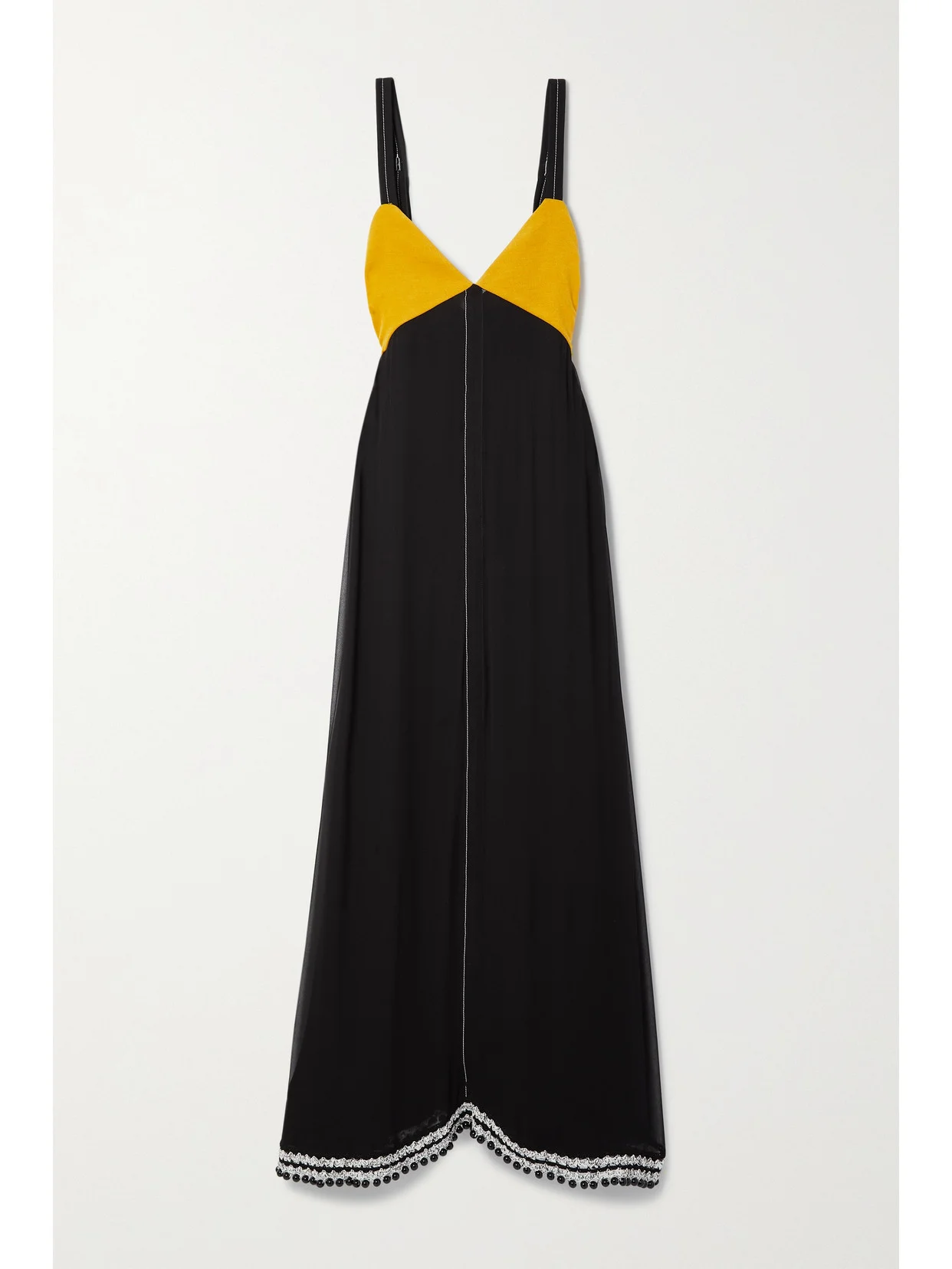Beaded Crochet And Velvet-trimmed Silk-chiffon Maxi Dress