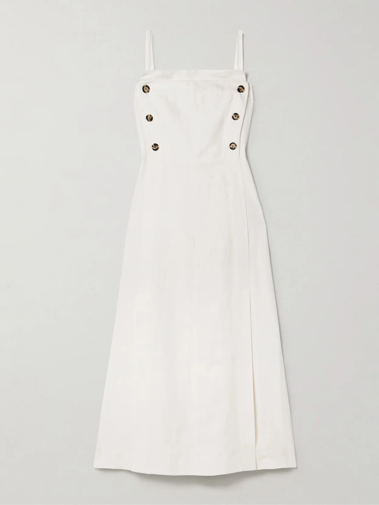 Proenza Schouler's 'Candice' dress is designed with two rows of buttons that call to mind nautical styles. Cut from off-white poplin, it has a slim bodice and falls to a maxi hem with a thigh-baring front slit.
