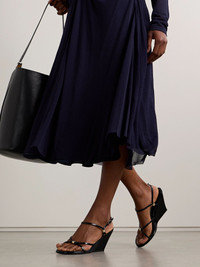 Coil embellished crinkled glossed-leather wedge sandals Black