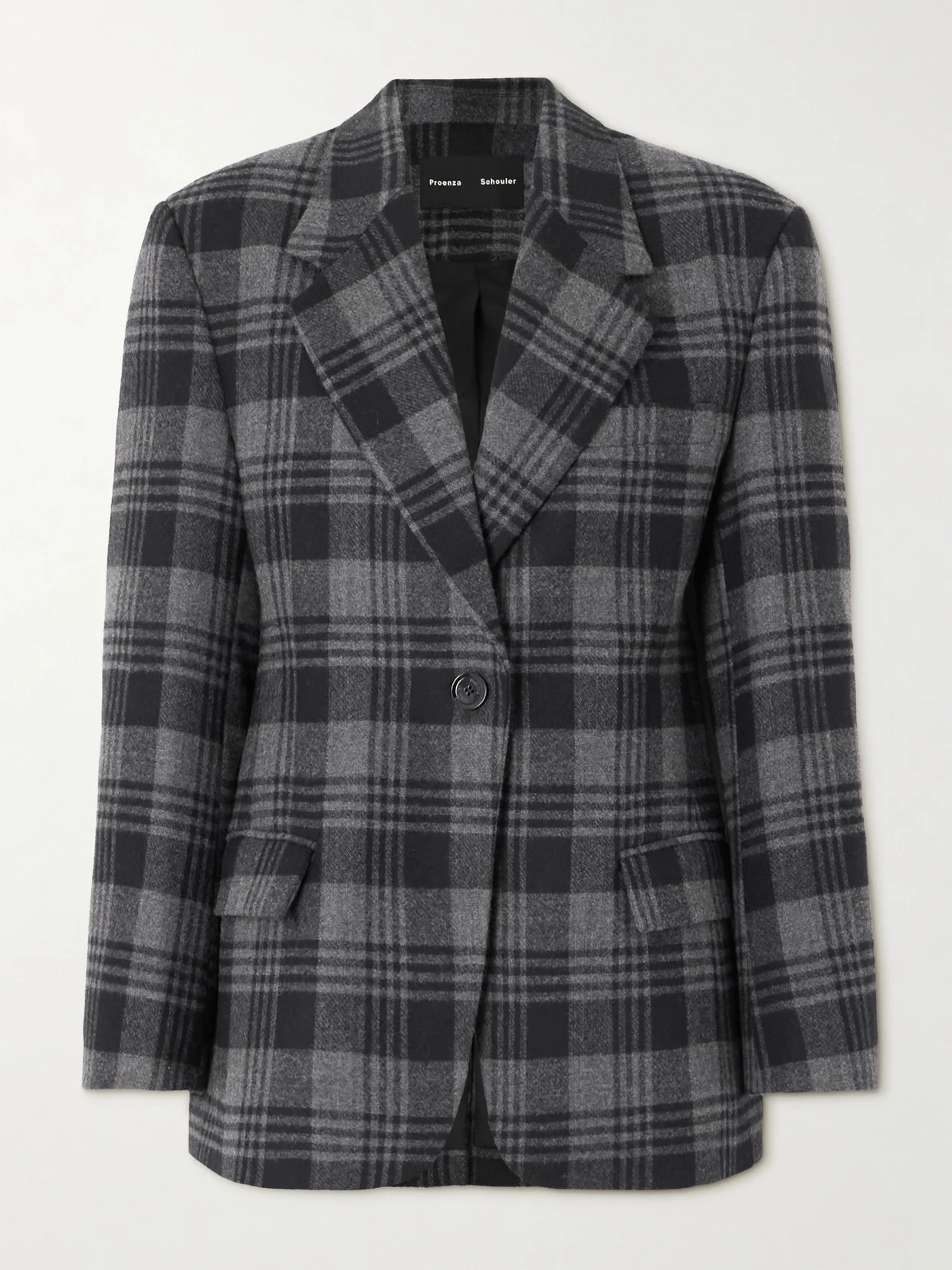 Proenza Schouler's 'Daria' blazer borrows from menswear with its strong profile. It's tailored from checked wool with wide notch lapels and a single button close. Style yours with pleated pants and a crisp shirt.