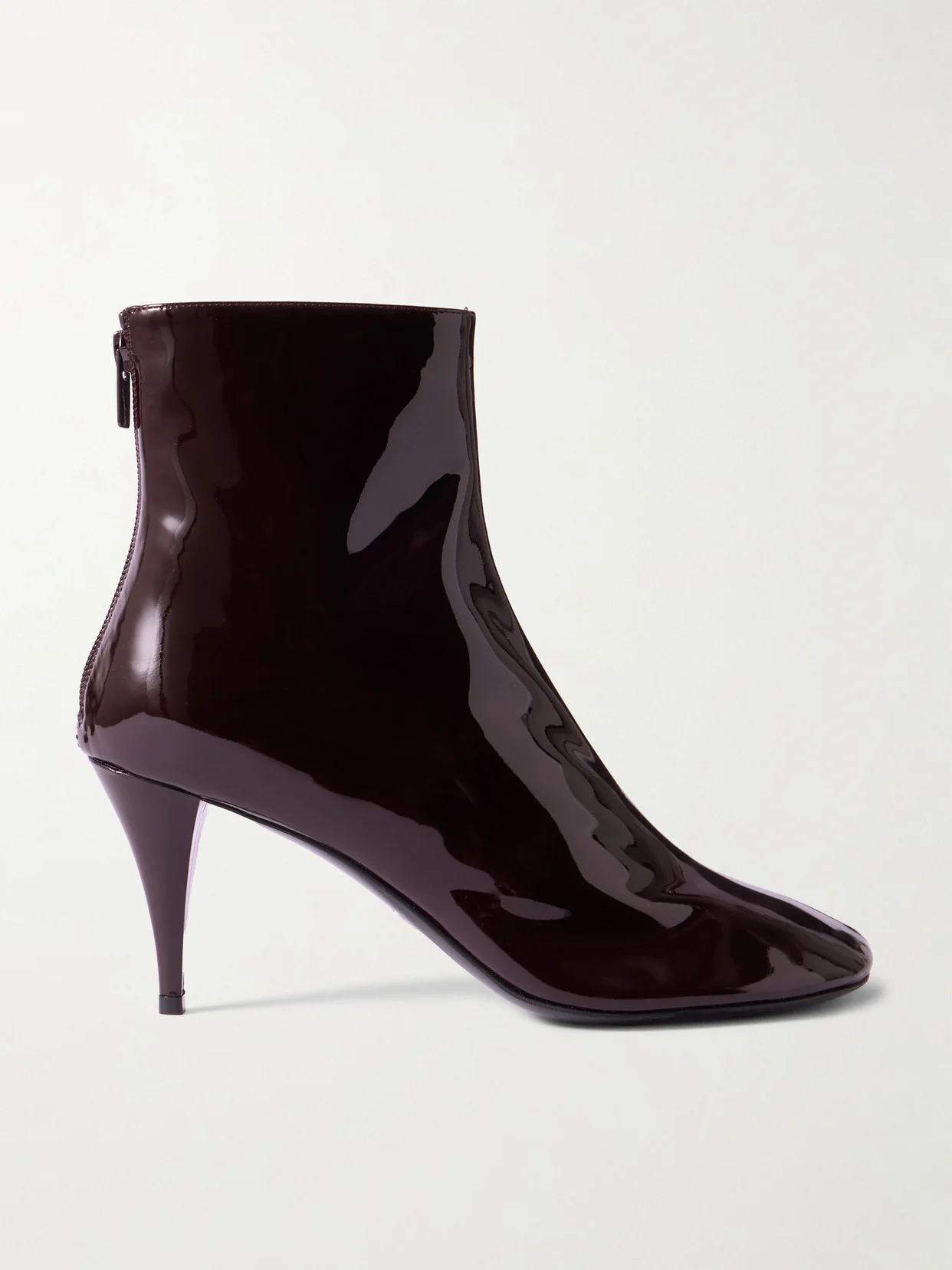 The patent finish on Proenza Schouler's 'Glove' ankle boots adds a touch of glamour to any look you style them with. They're made from burgundy patent-leather with rounded toes and rest on sculptural heels.