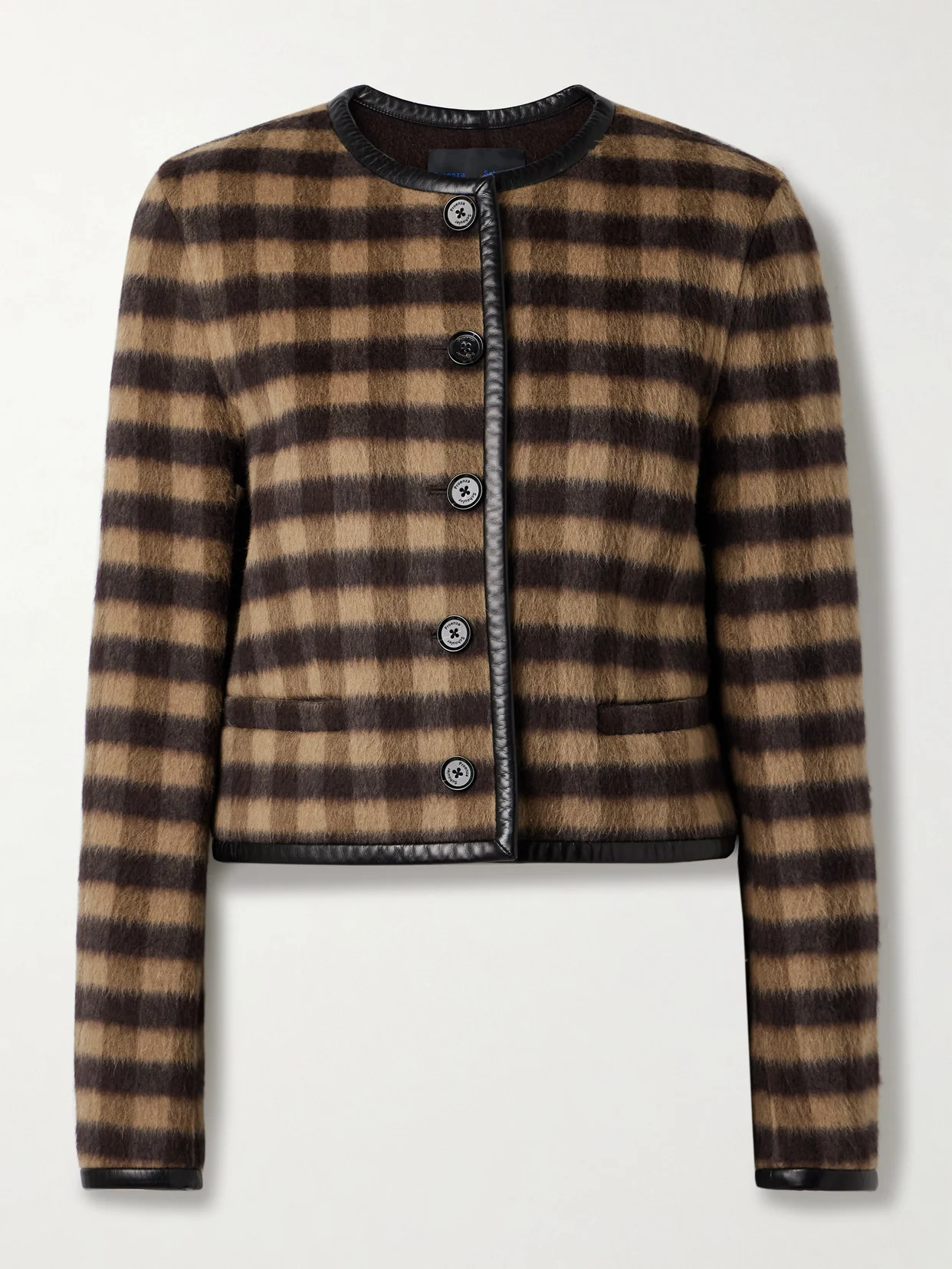 Helene Leather-trimmed Checked Brushed Woven Jacket