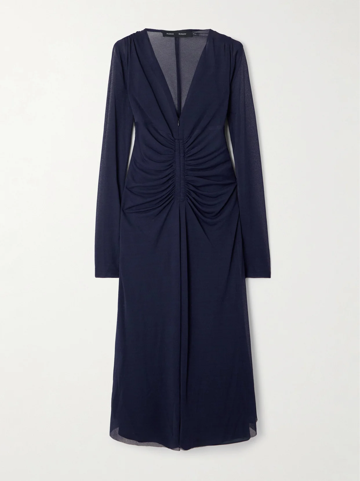 Proenza Schouler's 'Kerstin' dress is made from jersey that's so fine, it's slightly sheer. It's ruched just below the V-neckline, drawing the eye in while flattering your frame.