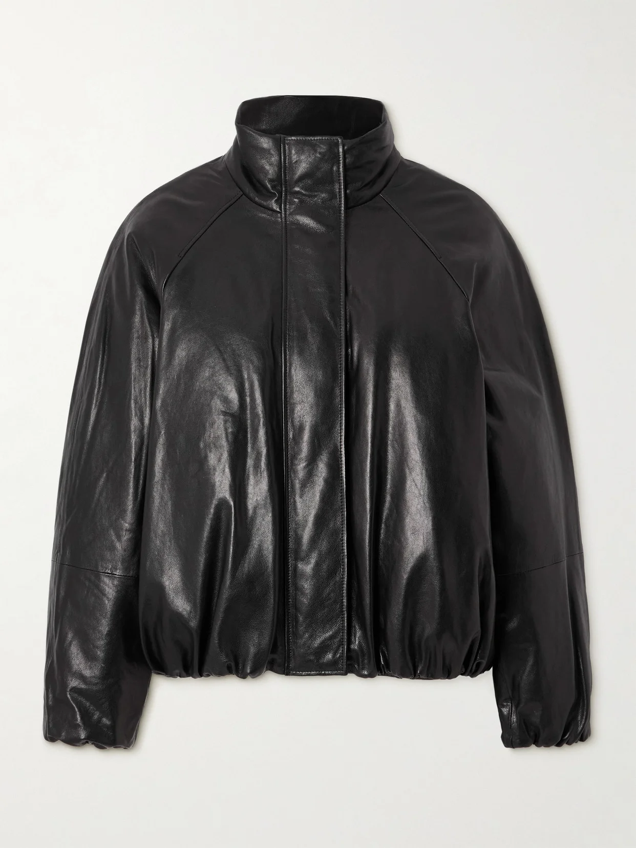 Proenza Schouler's 'Laney' jacket is gathered at the cuff and hems for volume. It's made from glossy leather for a relaxed fit and has a generous stand collar. It'll sit comfortably over layers thanks to the full lining.