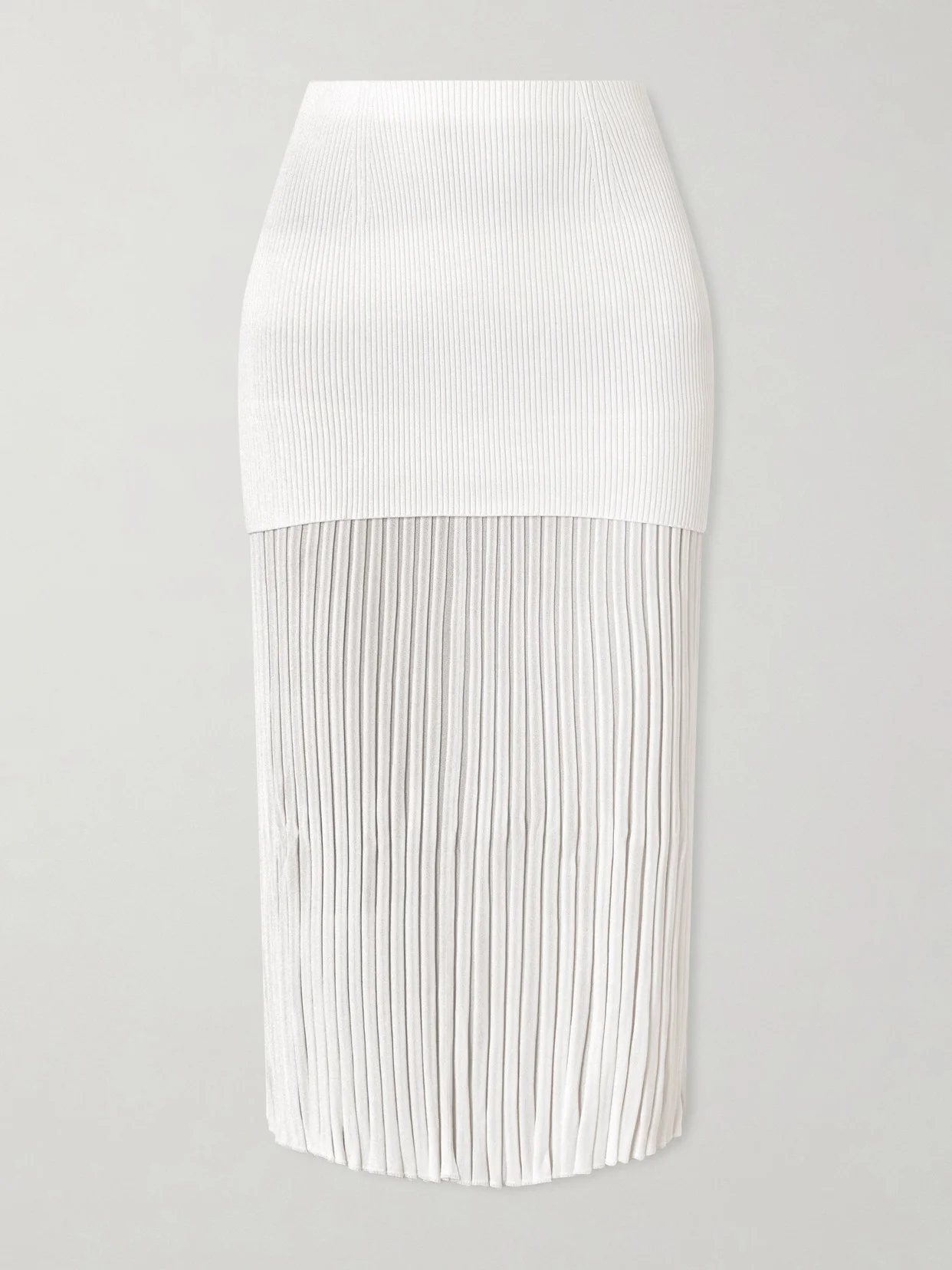 Proenza Schouler's modernist sensibility comes through in this 'Luiza' skirt, a staple which balances ease with architectural nuance. Made from ribbed-knit, it's defined by a layered construction that creates subtle movement with every step. Style yours with a sleek tank or sculptural knit to highlight its clean, elongated lines.