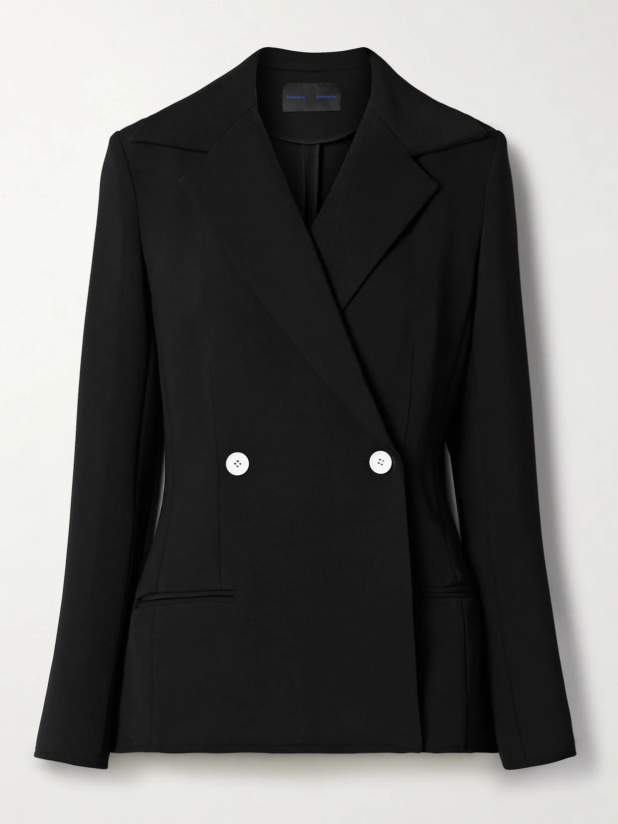 Proenza Schouler's Spring '25 collection draws inspiration from traditional maritime styles. This 'Marine' jacket is tailored from twill in a double-breasted shape, cut with split sleeves and has widespread notch lapels reminiscent of a sailor's collar. Wear yours with a striped tee, as seen on the runway.