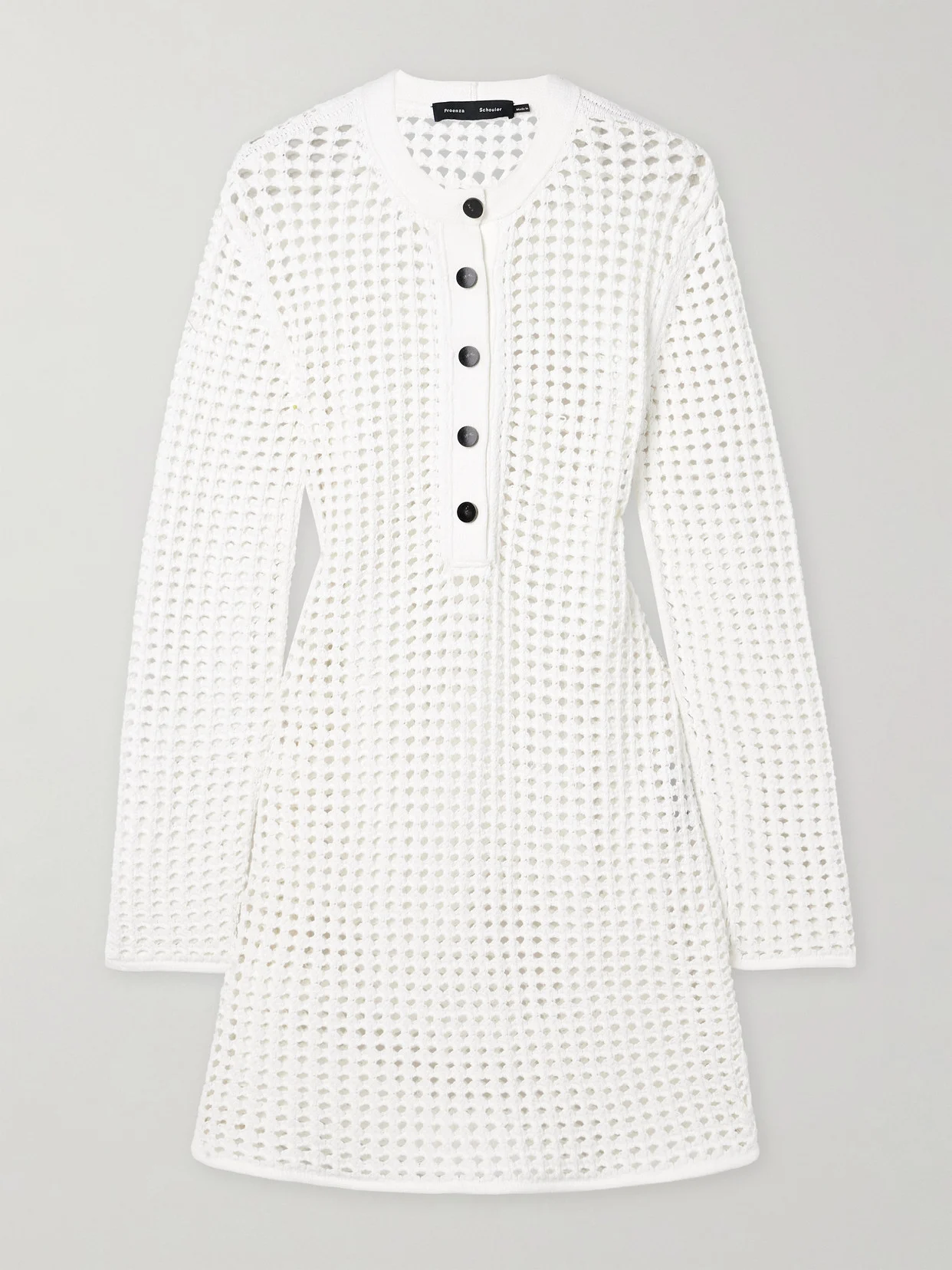 Proenza Schouler's collections feature understated yet remarkable designs. This 'Micah' dress is crocheted in an open stitch and fastens with a row of buttons. Wear yours over a swimsuit or tonal slip.