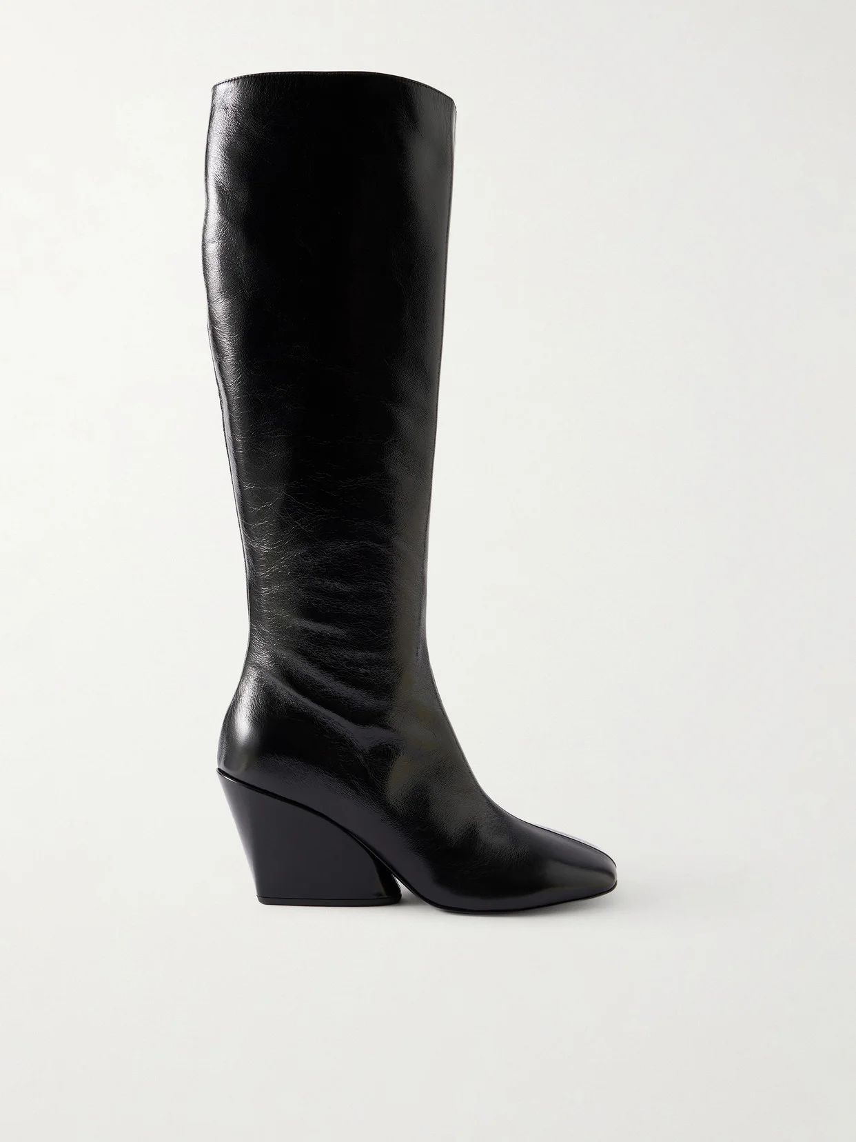 Slant Glossed-leather Knee Boots