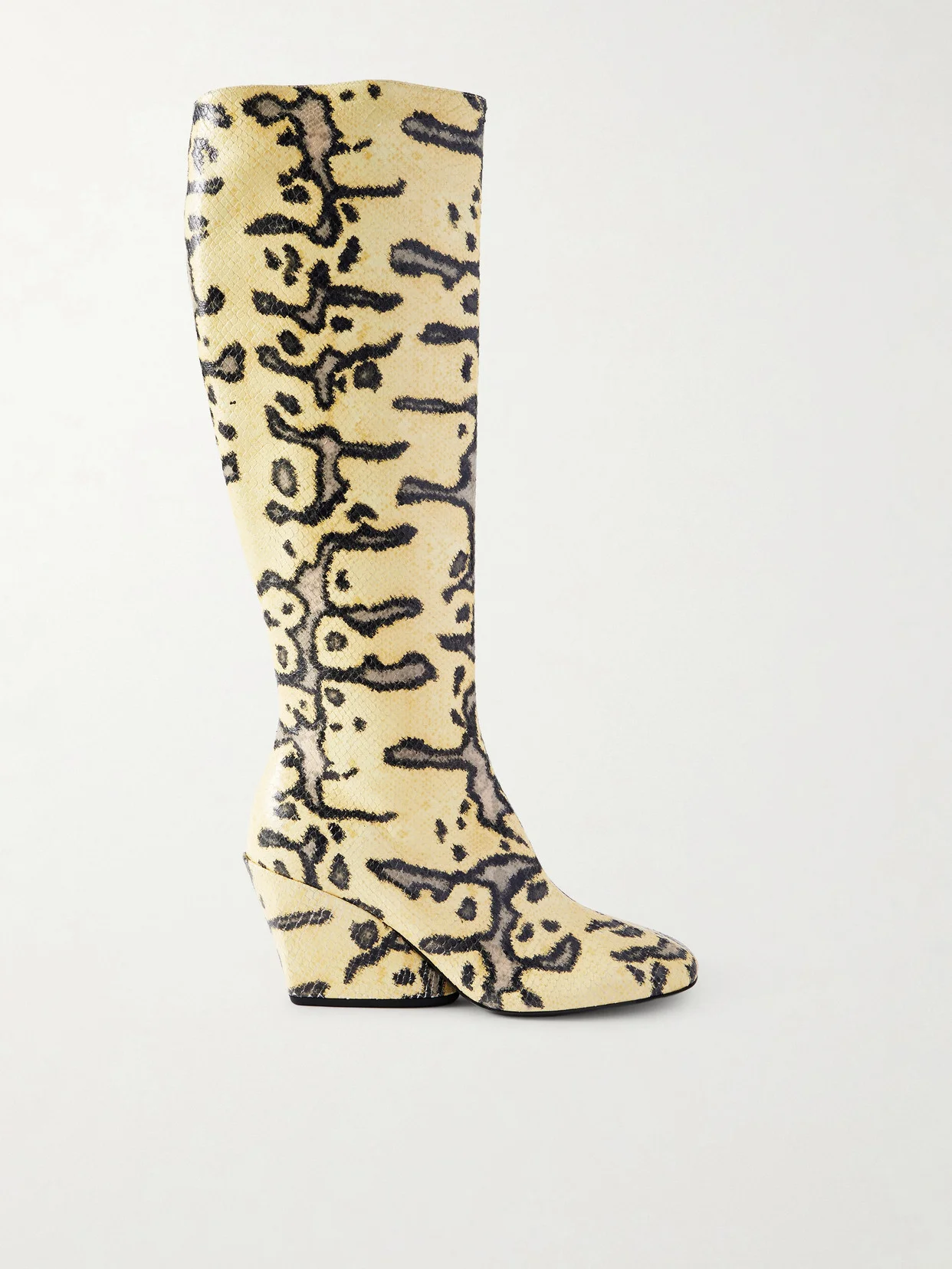 Slant Snake-effect Leather Knee Boots