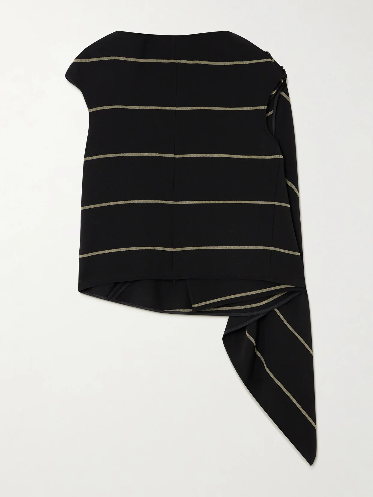 Sutton Button-detailed Asymmetric Paneled Striped Crepe Top