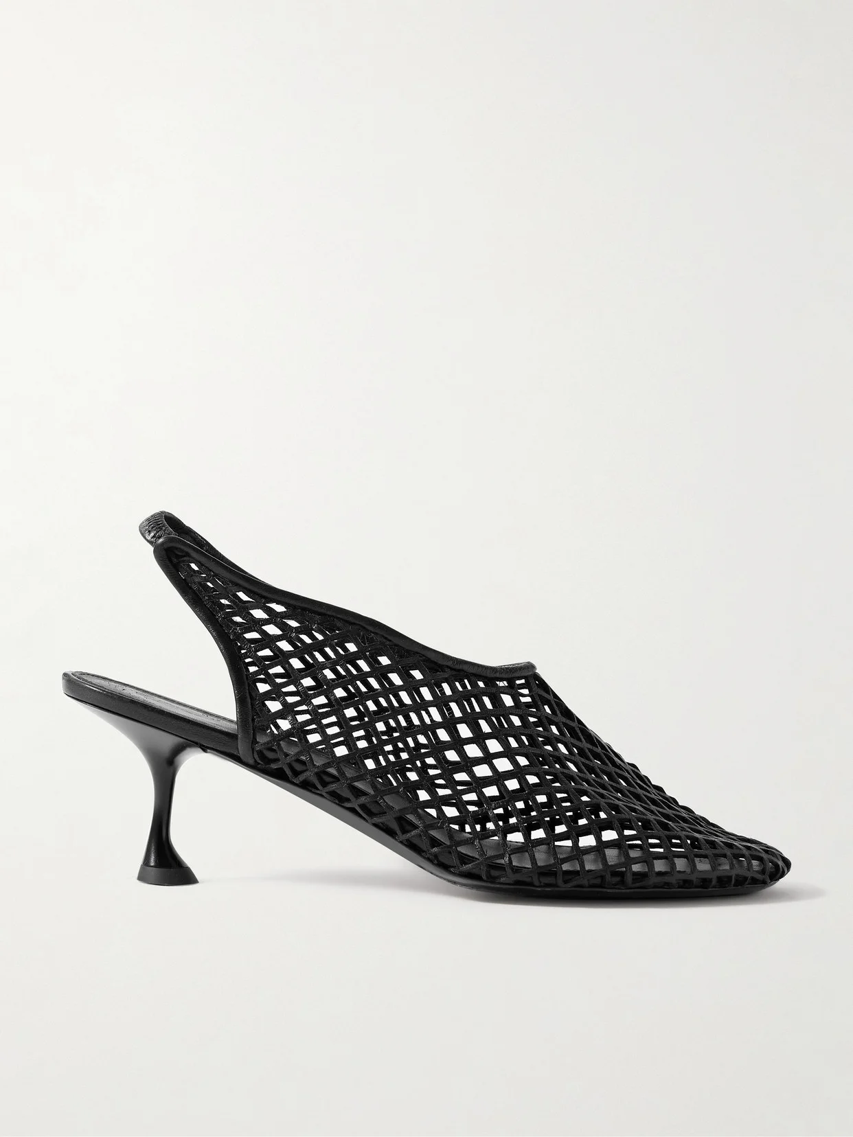 Proenza Schouler's 'Tee' pumps are made from leather that's meticulously cutout to create the look of fishnet and a cool, open construction. They're designed with an elasticated slingback strap for a comfortable fit and rest on fluted 60mm heels that enhance the sculptural feel.