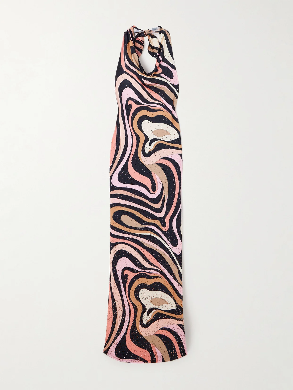 PUCCI designed this sultry dress to "enchant at first glance" and it certainly does just that. It's made from smooth satin-jersey printed with signature 'Marmo' swirls and enhanced by light-catching crystals throughout. The slim shape is complete with a draped halterneck. Wear yours with a chunky bracelet stack.