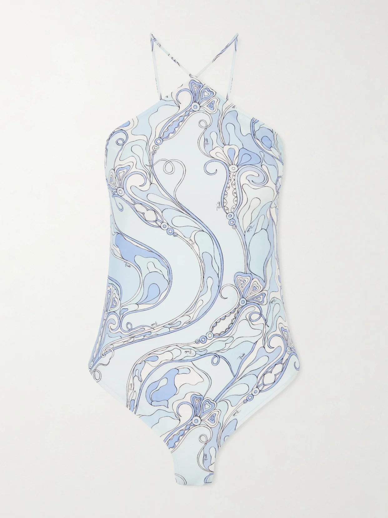 PUCCI's archival prints remain as coveted today as when they first debuted. This swimsuit is crafted from quick-drying stretch fabric and features adjustable straps that form a halterneck, elegantly crossing the open back for a chic, flattering fit.