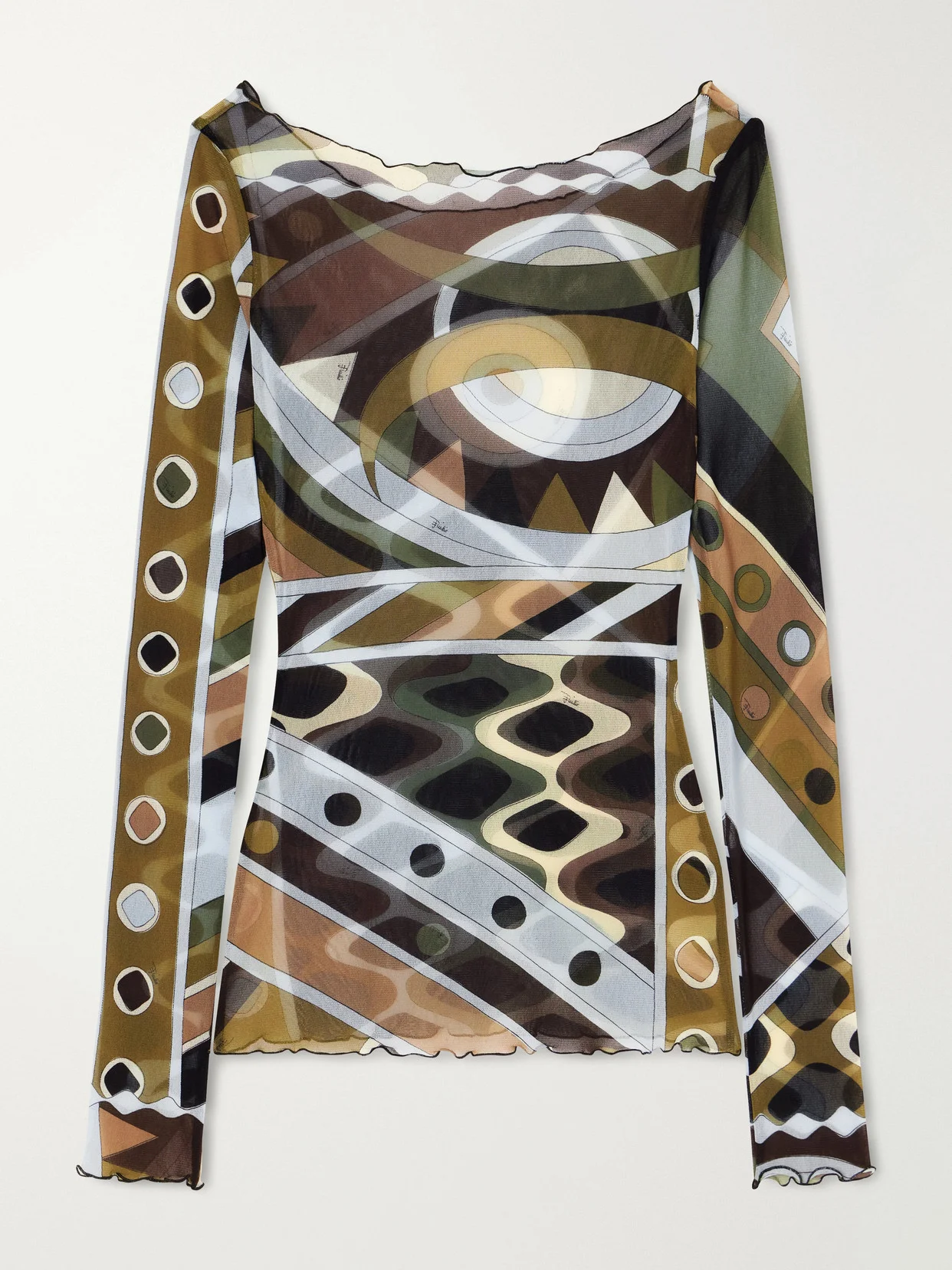 Pucci's signature 'Vivara' print lends a dreamlike quality to this top. Cut from sheer tulle, it features a bateau neckline and delicate babylock edges. Underpin it with a tonal bra or bikini for a refined, layered look.