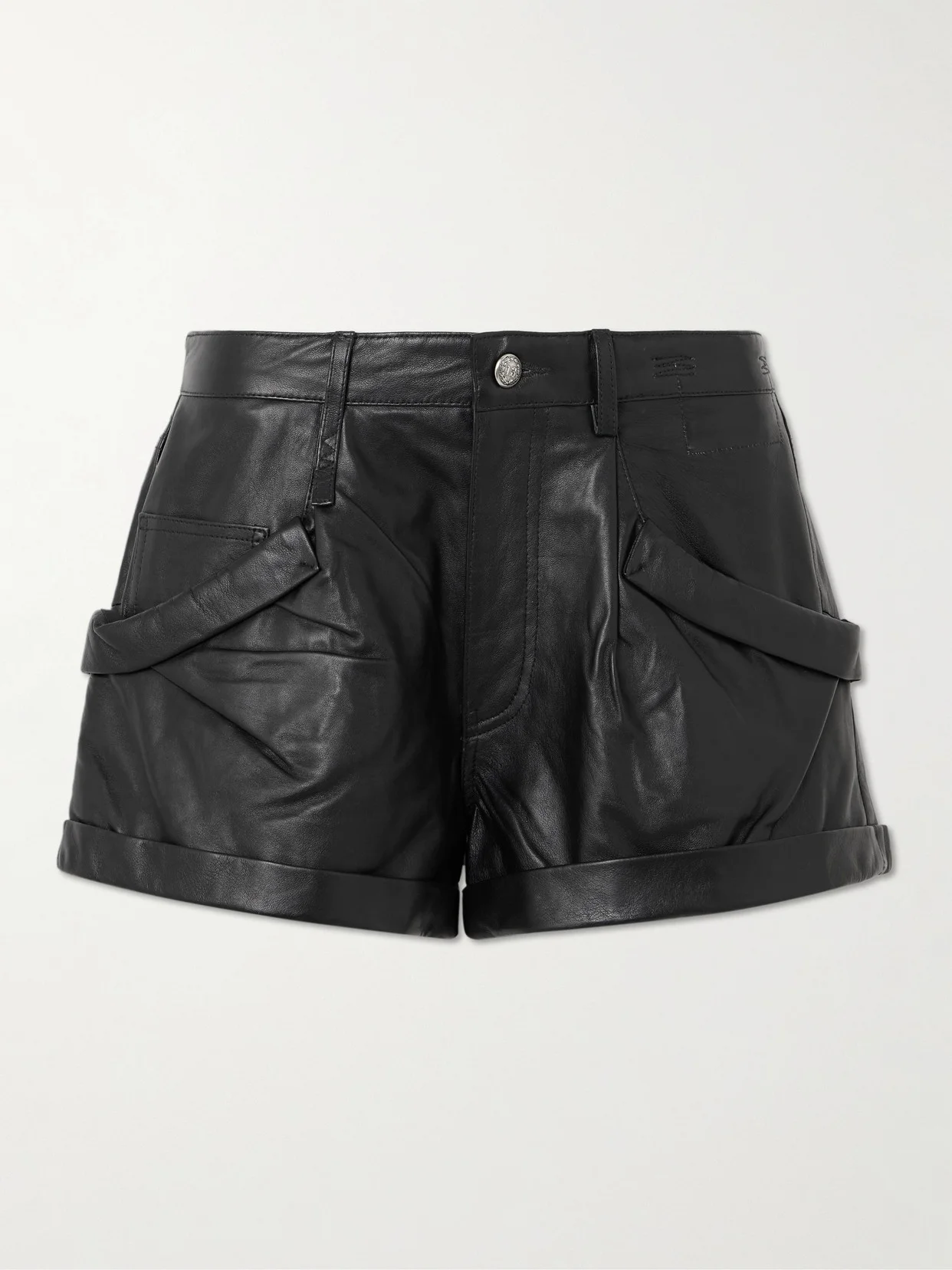 Gathered Leather Shorts