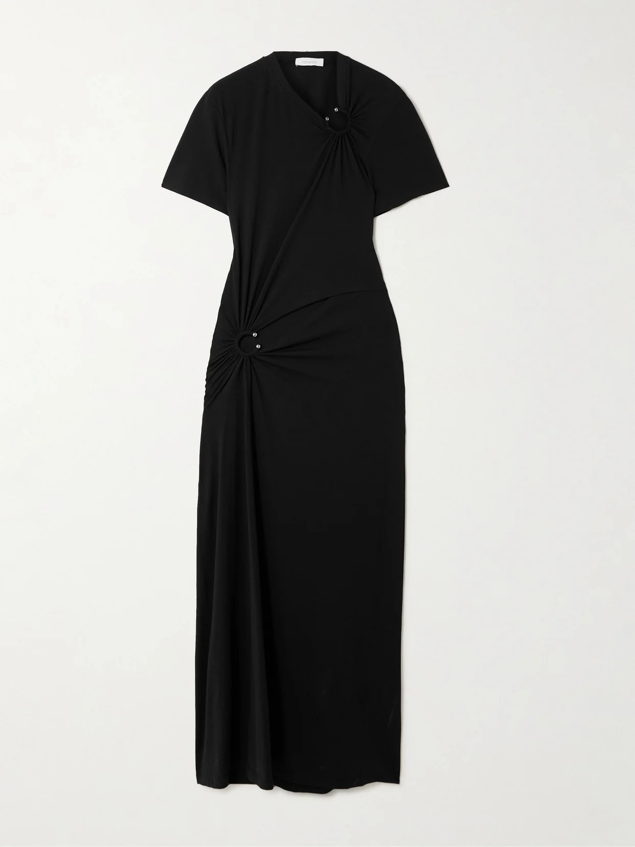 Rabanne finds new, fresh ways to work its signature metalwork into its collections every season. Cut from slinky jersey, this maxi dress is loosely draped and accented with silver-tone rings that create cool cutouts.
