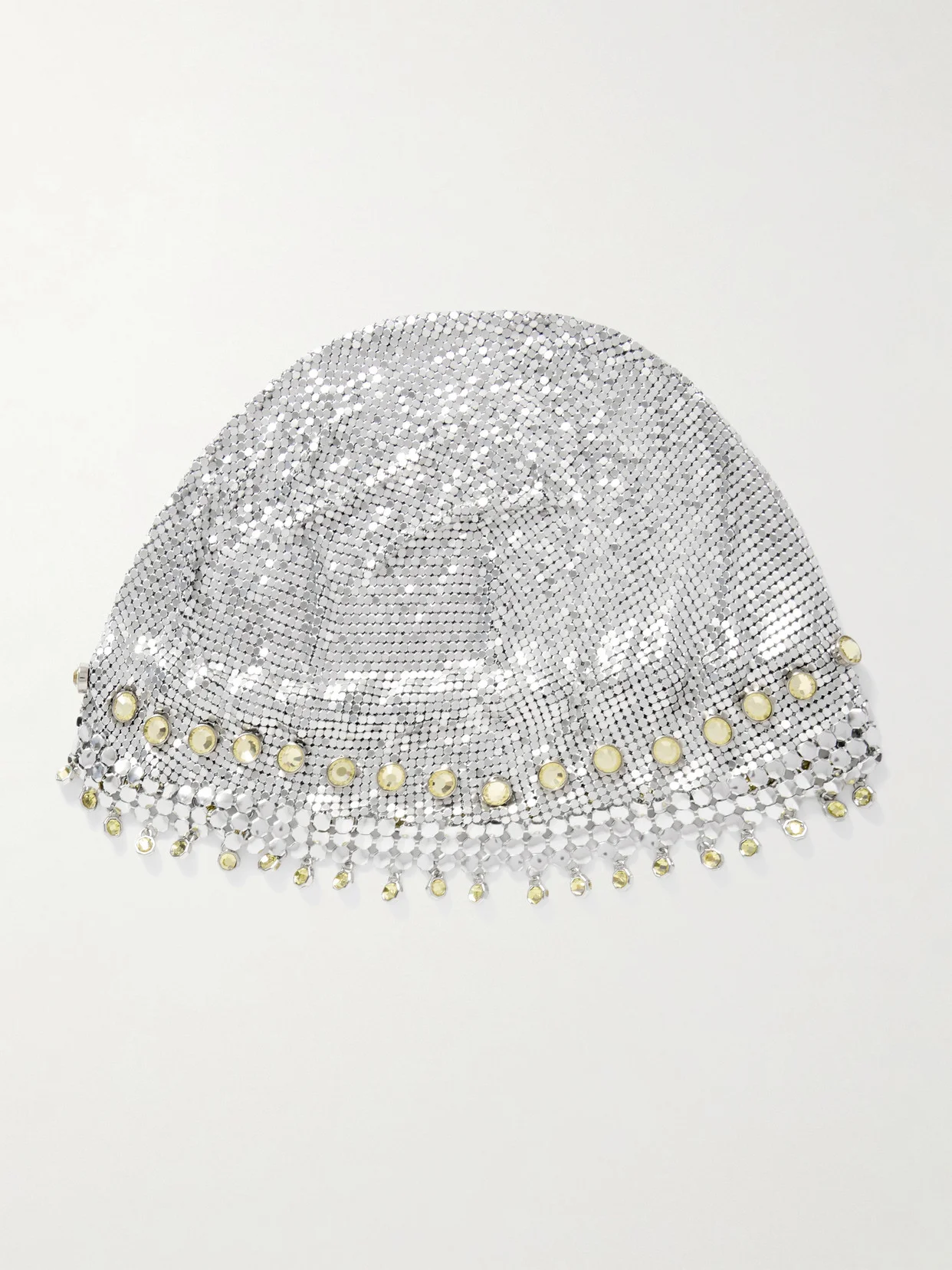 Fringed Crystal-embellished Silver-tone Chainmail Hat