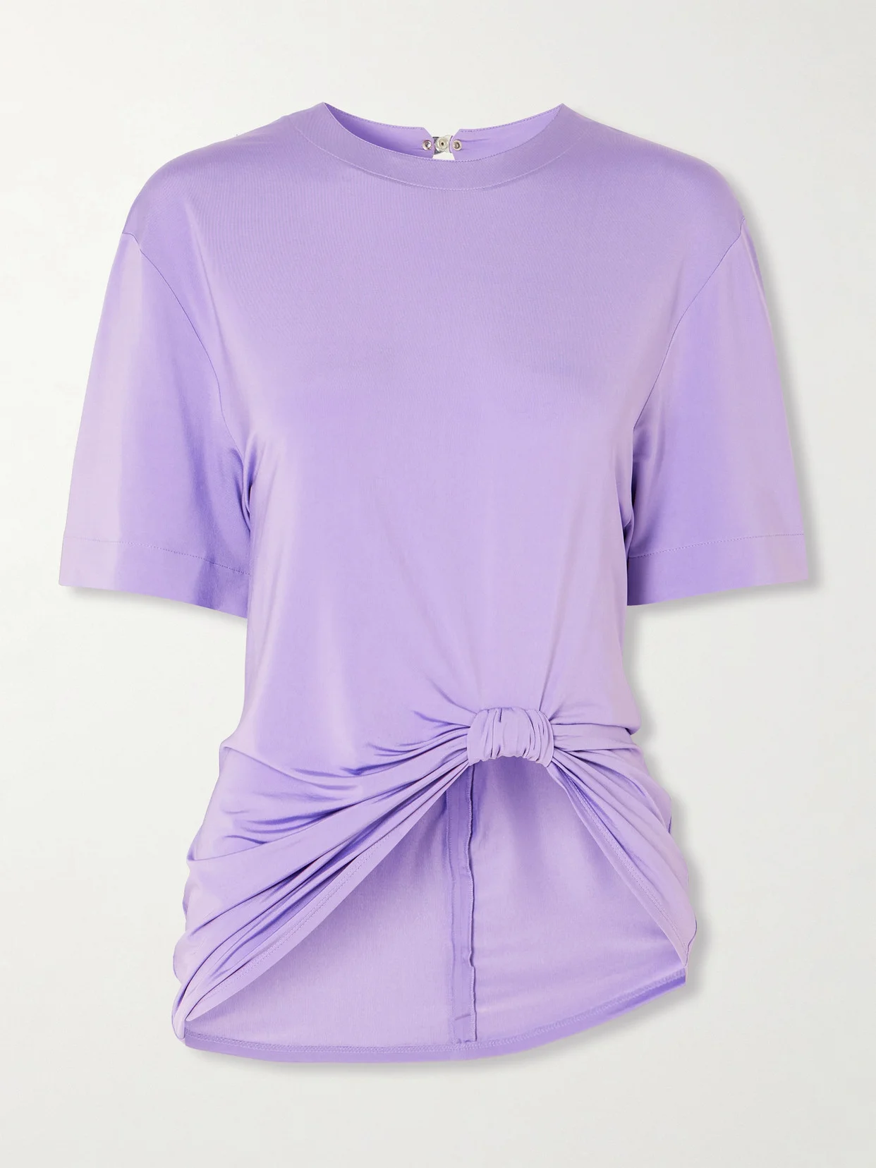 Rabanne's T-shirt is cut from smooth stretch-jersey and artfully knotted at the front to create a beautiful drape throughout. Match the lavender shade to the coordinating skirt.
