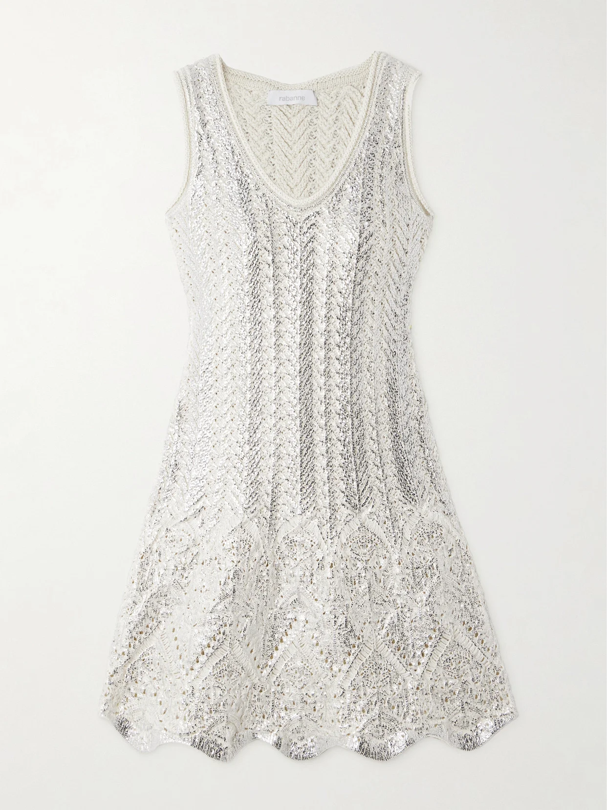 Rabanne's mini dress is knitted from a cotton-blend with silver foil details that create a beautiful luster. It's designed for a slim fit and has intricate motifs along the scalloped hem. Wear yours with the label's chainmail accessories.