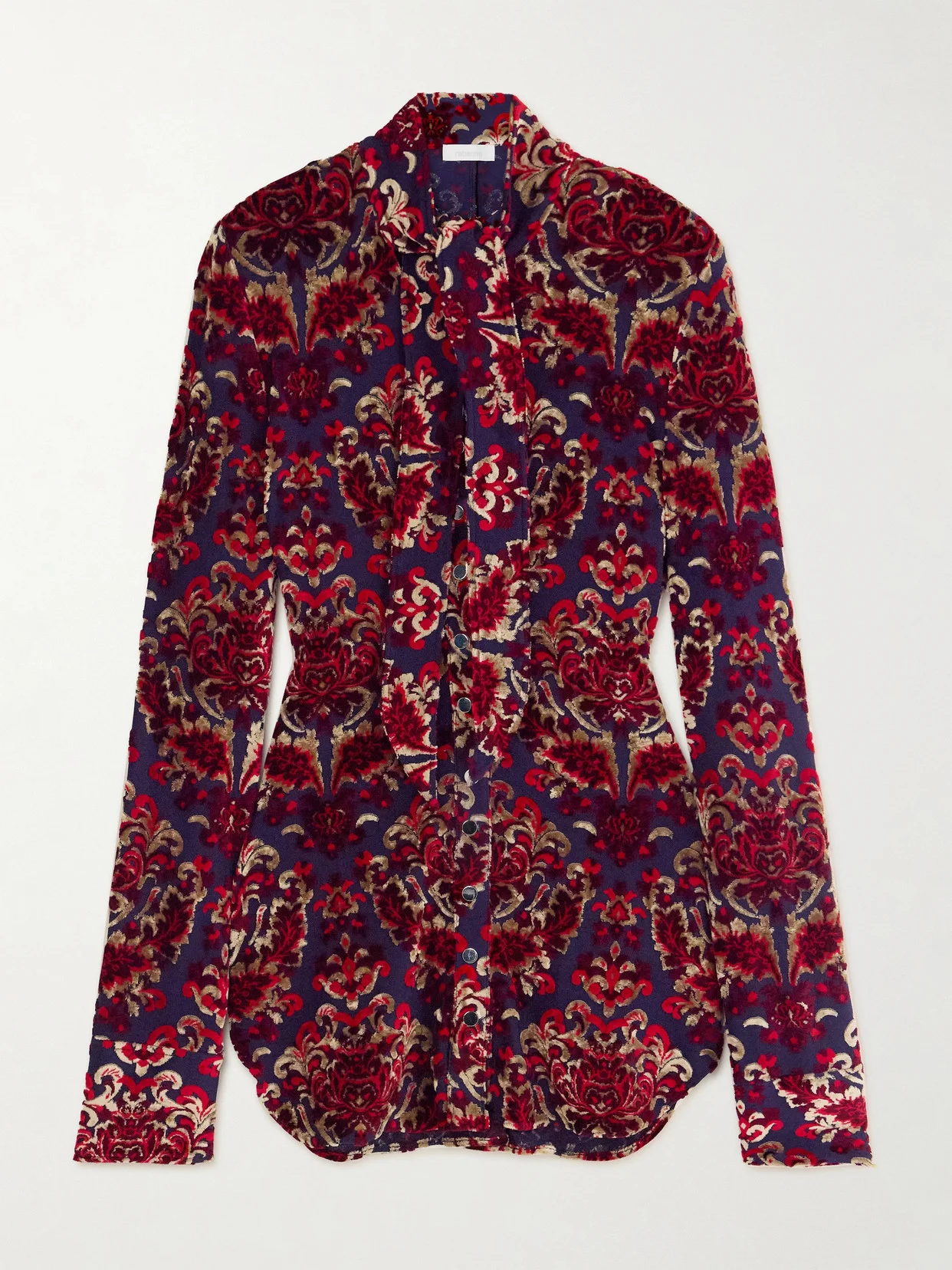 Rabanne's blouse taps into a bohemian feel with its relaxed shape and ornate devore-velvet. It's patterned with paisley motifs in a rich palette and cut with a tie-detailed neckline. The silver-tone snaps are a nod to the label's iconic hardware.