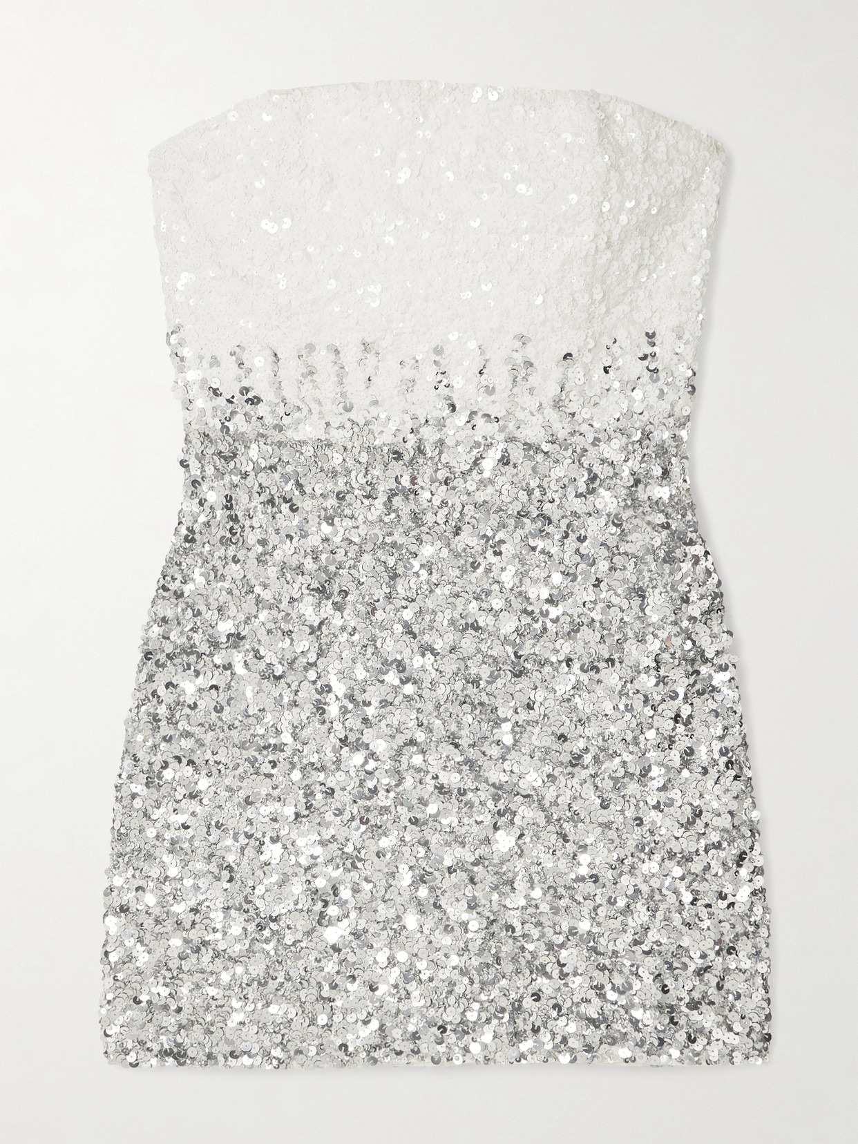 Katalina Strapless Two-tone Sequined Tulle Mini Dress