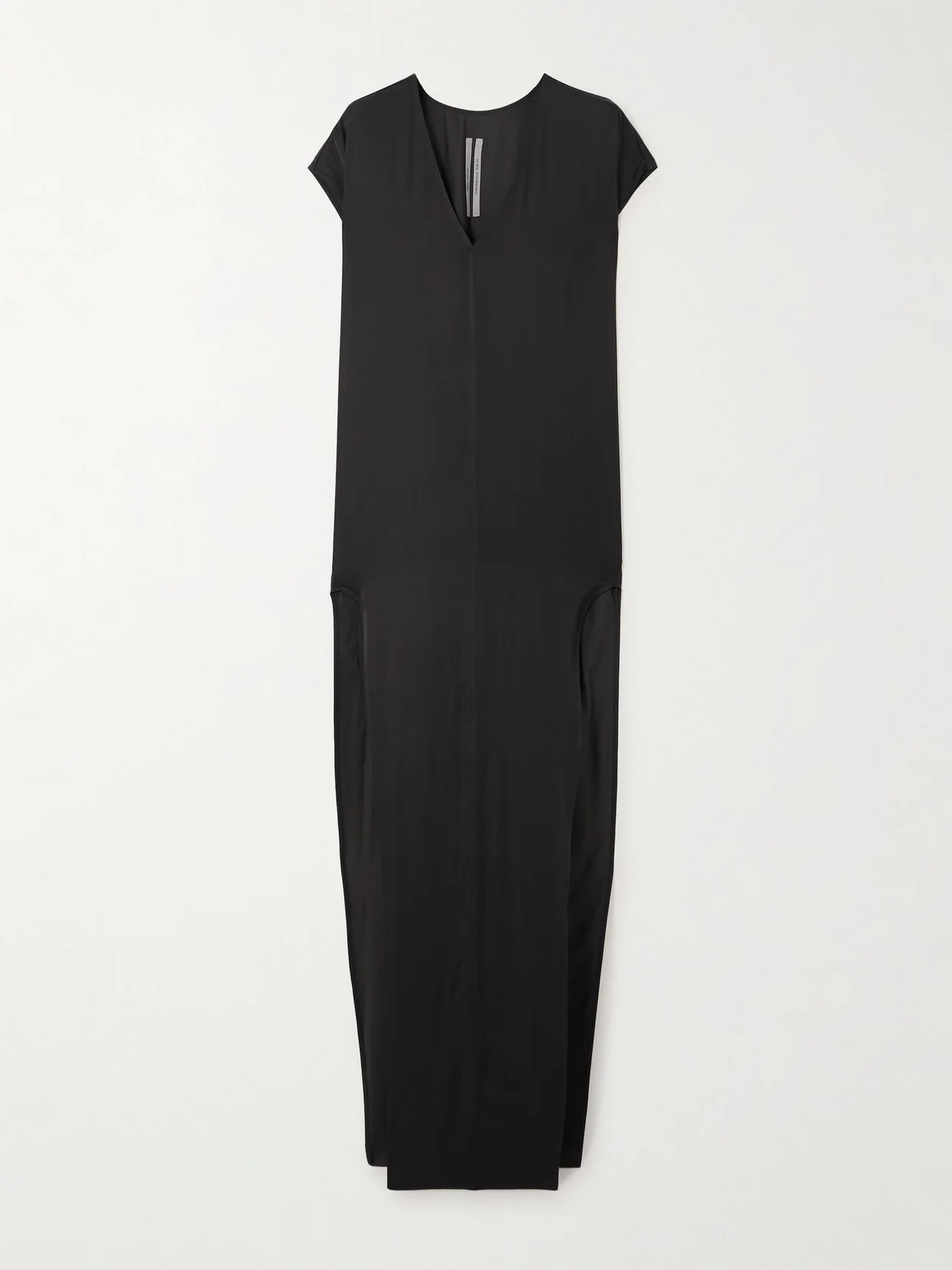 Rick Owens' 'Arrowhead' gown has a languid drape that flows beautifully in motion. It's cut from satin with a V-neckline and leg-baring slits at the sides. Balance the extra-long hem with platforms.