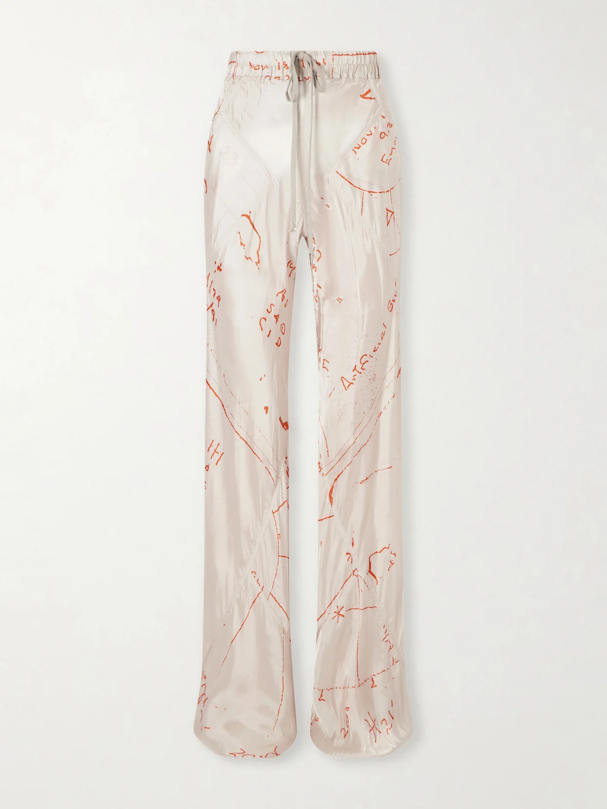 Rick Owens' 'Bias' pants embody the designer's subversive edge while maintaining a refined ready-to-wear sensibility. Paneled from lustrous satin, they're designed in a loose fit and feature diagonal seams along the legs which break up the abstract print.