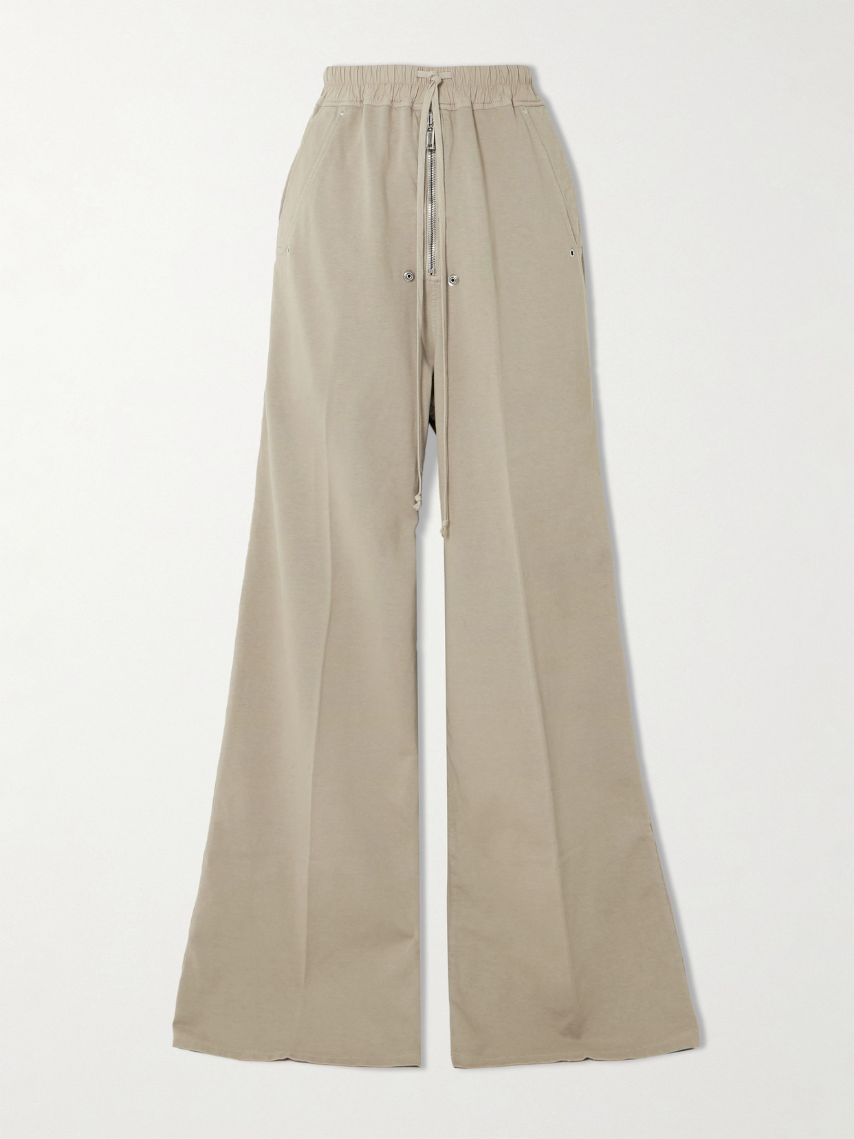 There's no need for logos, Rick Owens' pants are easily recognizable thanks to their elongated drawstrings. Modeled after track styles, they're cut from cotton and have wide legs that pool at the ankles.