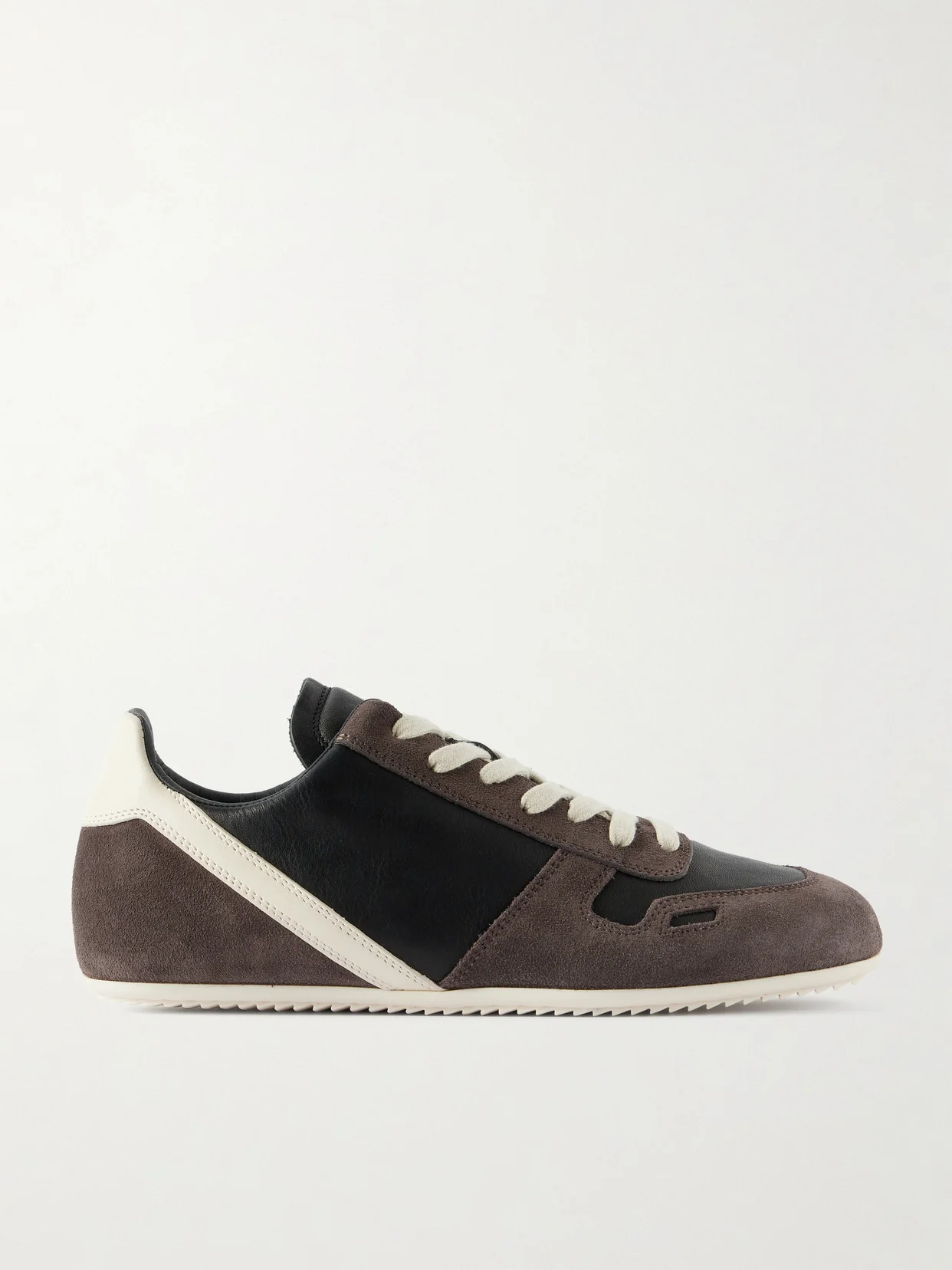 Rick Owens' sneakers are a minimal take on retro running styles. They're crafted in Italy from leather and suede and rest on signature 'Shark Tooth' soles. The neutral palette will go with so much in your wardrobe.
