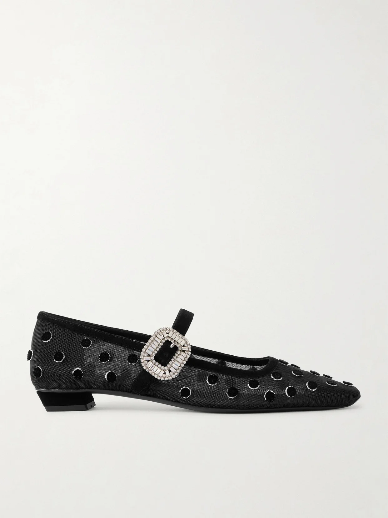 Roger Vivier's elegant 'Belle Vivier' shoes have been re-imagined countless times since launching in 1965. This Mary Jane version has been made in Italy from sheer mesh that's flocked with velvet polka-dots and embellished with light-catching crystals at the buckle.