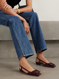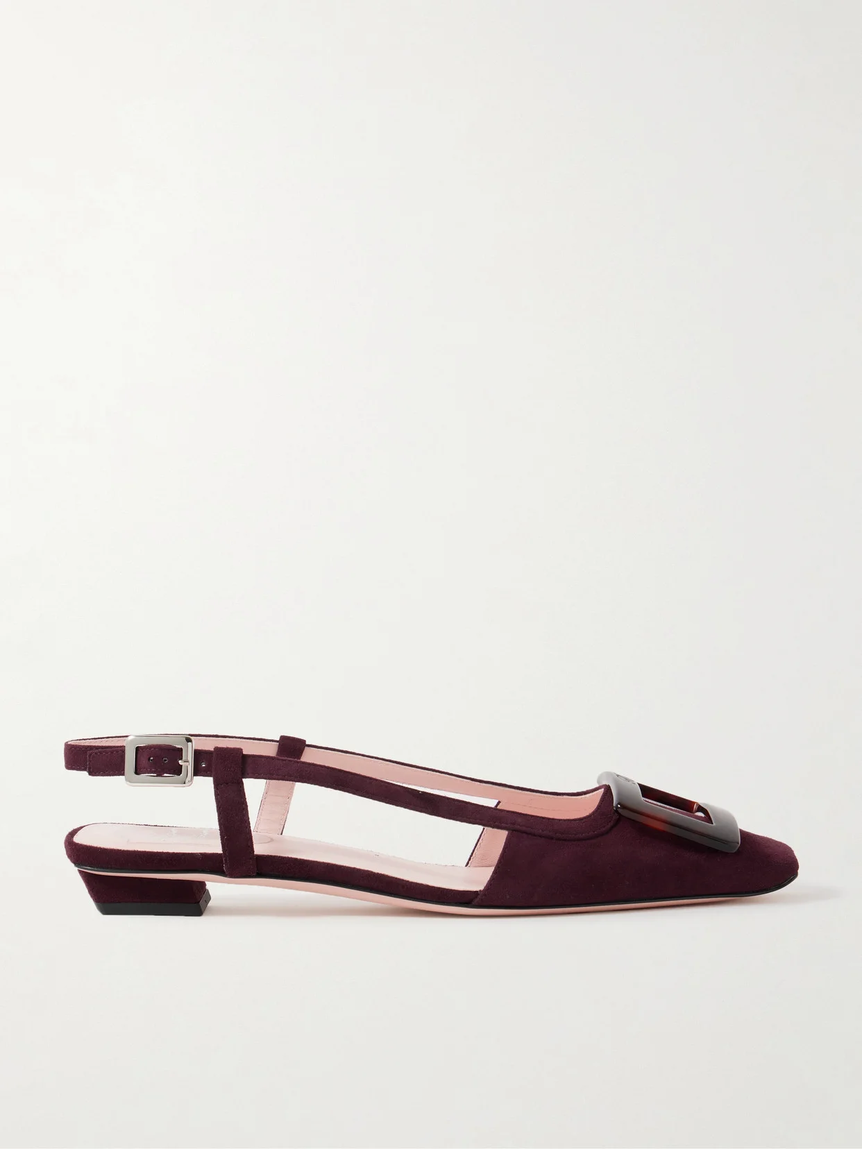 Roger Vivier's 'Belle Vivier' pumps debuted in 1965 and remain just as timeless and elegant today. This version is made from velvety suede and features the signature buckle, this time in tortoiseshell PVC. The 25mm heels offer comfortable lift while the slingback straps can be adjusted to ensure a secure fit.