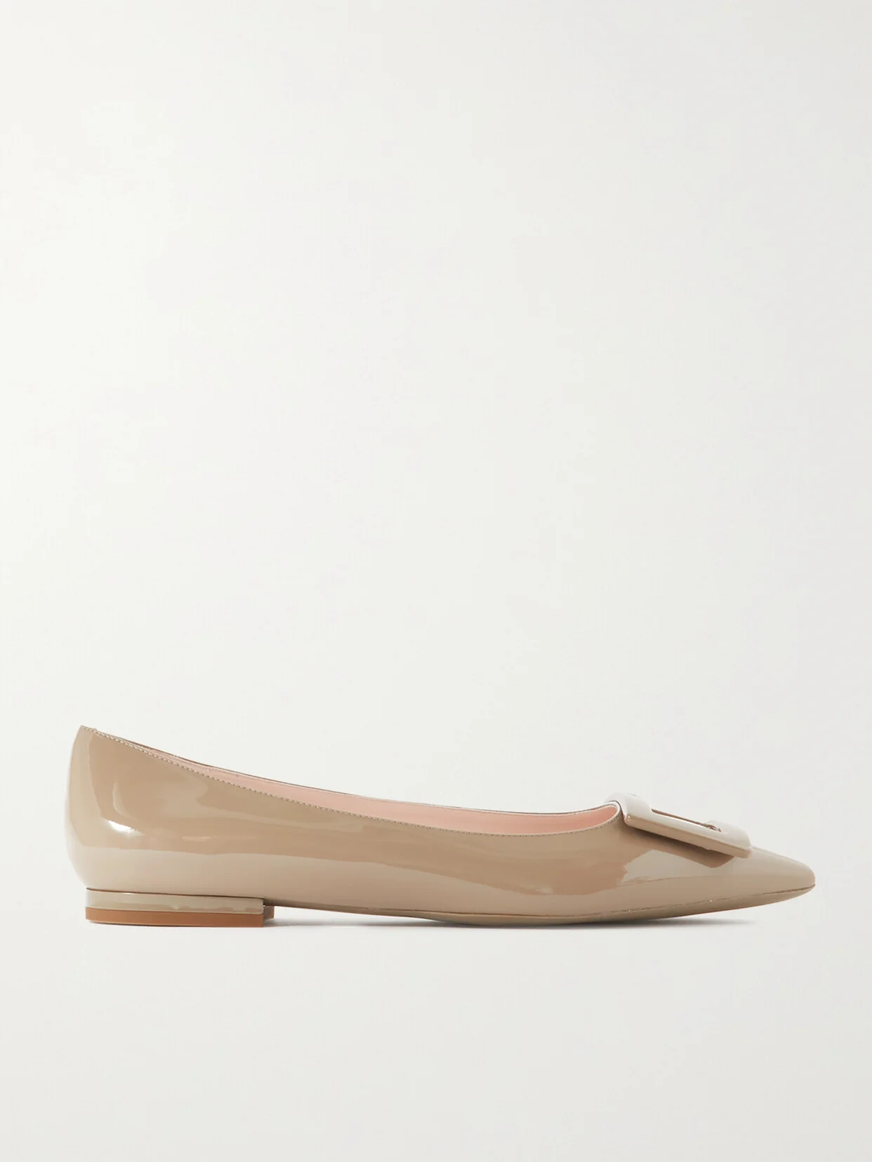 There's an unparalleled elegance to Roger Vivier's shoes, which is why they're adored by so many incredible women. These 'Gommettine' point-toe flats are crafted from patent-leather and topped with an emblematic buckle. Slight heels make them a comfortable option for busy days.