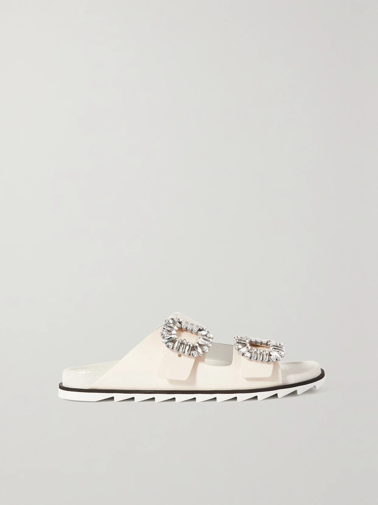 Roger Vivier's Swarovski crystal-embellished buckles are inspired by the original square-shaped ones created for Yves Saint Laurent's 1965 Mondrian collection. Made in Italy from smooth leather, they rest on molded satin soles and serrated rubber bases. Match your jewelry to the sparkling hardware.