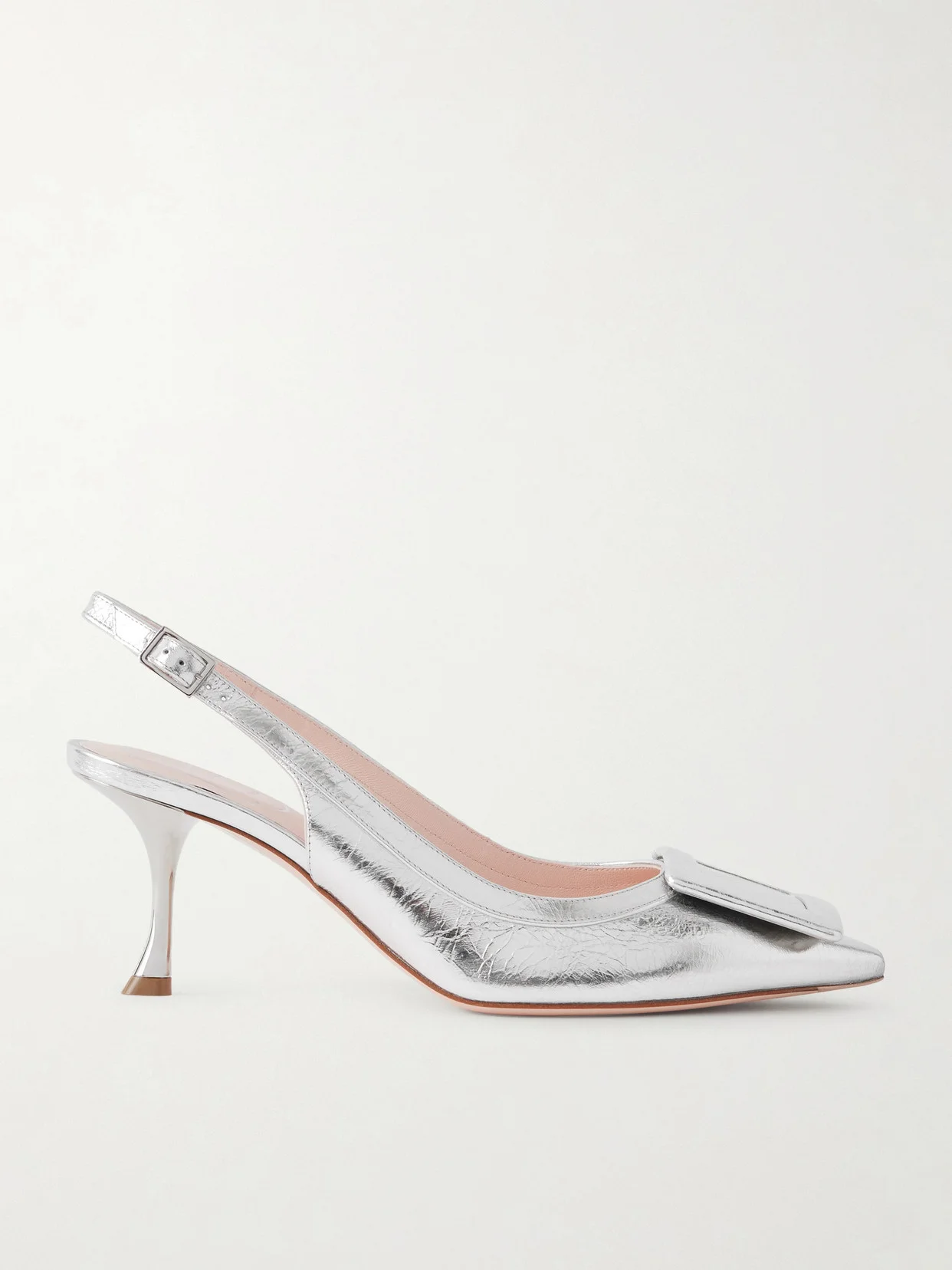 Roger Vivier gives its 'Viv In The City' slingback pumps a glamorous, modern feel. They're made from metallic textured-leather topped with a coordinating version of the label's iconic buckle. They'll liven up tailoring and add drama to simple dresses.